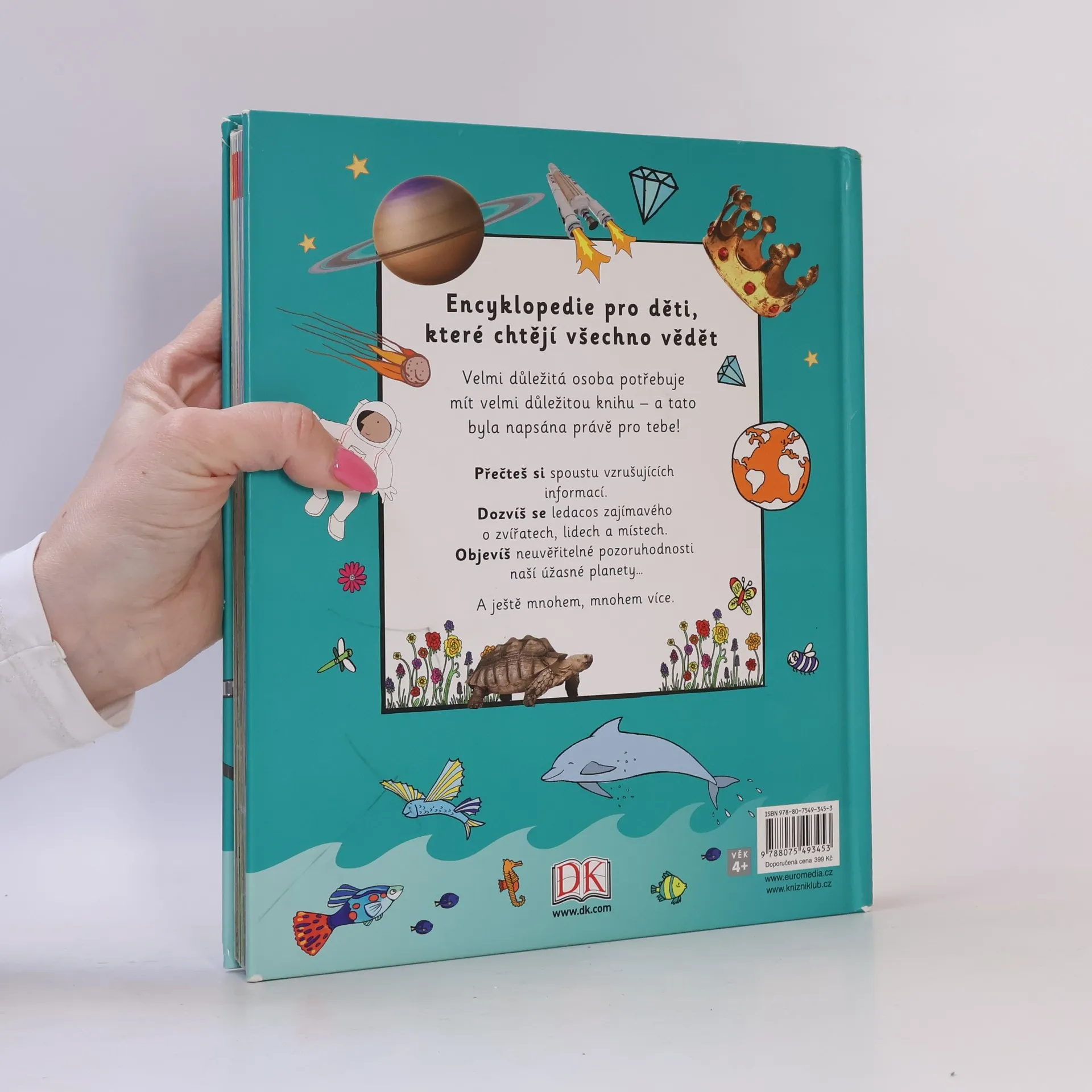 Malí objevitelé od 4 do 7 let se v této přehledné encyklopedii s bohatými ilustracemi dozvědí vzrušující a velmi důležité informace o světě, který je obklopuje: o vesmíru, o minulosti naší planety, o kontinentech, o přírodě, o vědě, objevech či umění, ale také o lidech, kteří planetu obývají, o vlastním těle a vůbec o spoustě dalších věcí, které v jiných knihách nenajdou. Pro zvídavé děti je tato knížka k nezaplacení!
