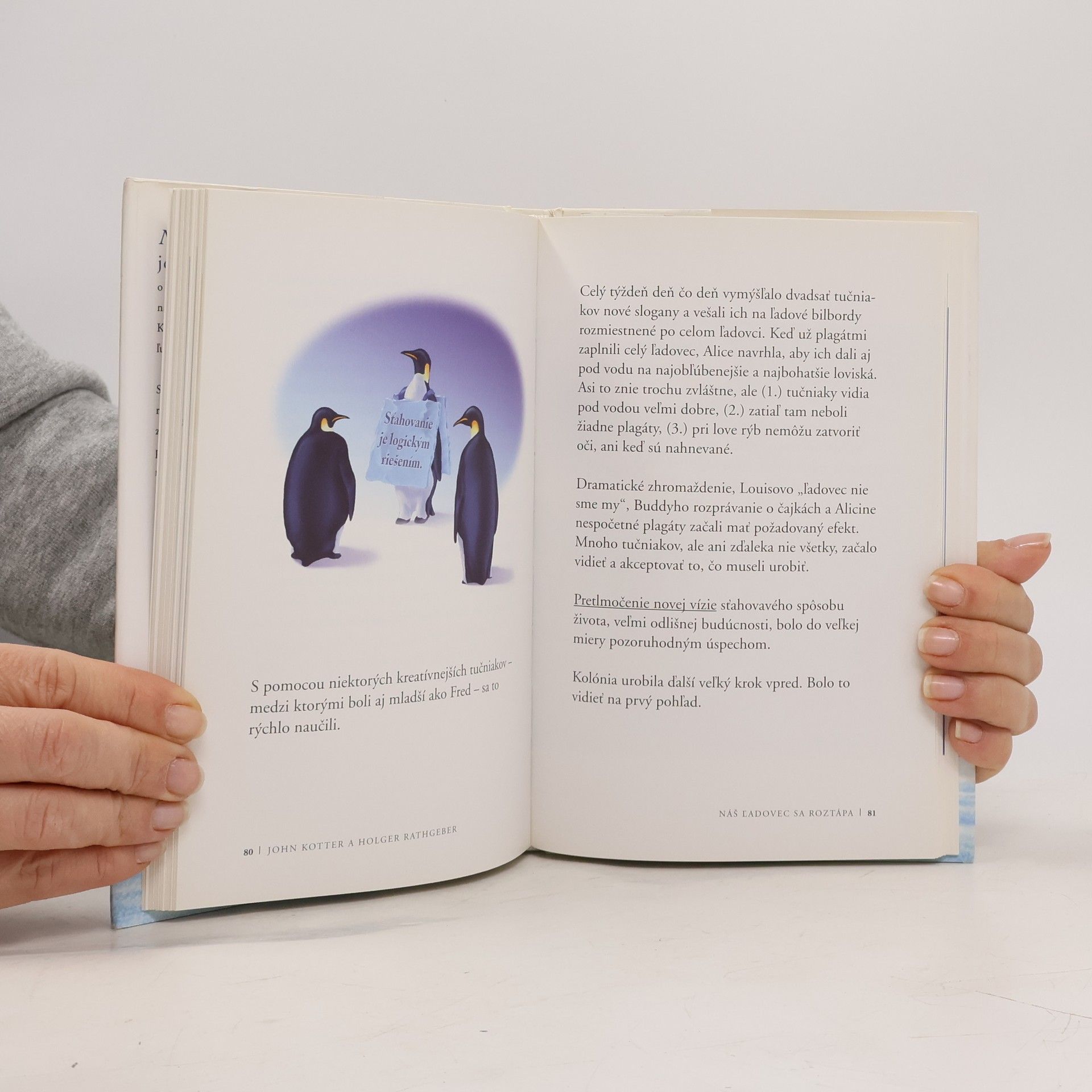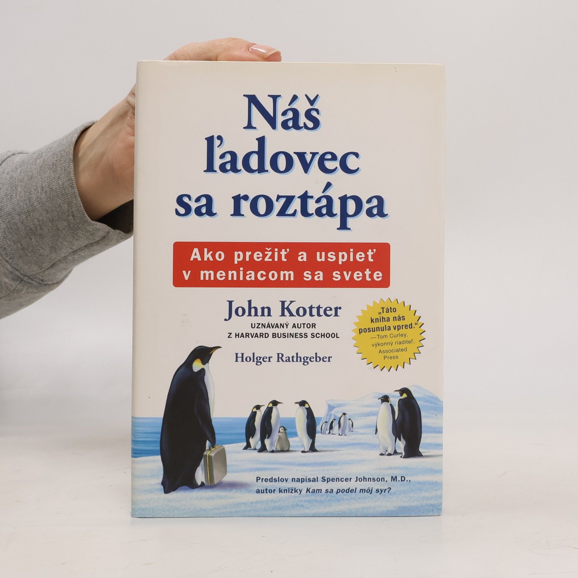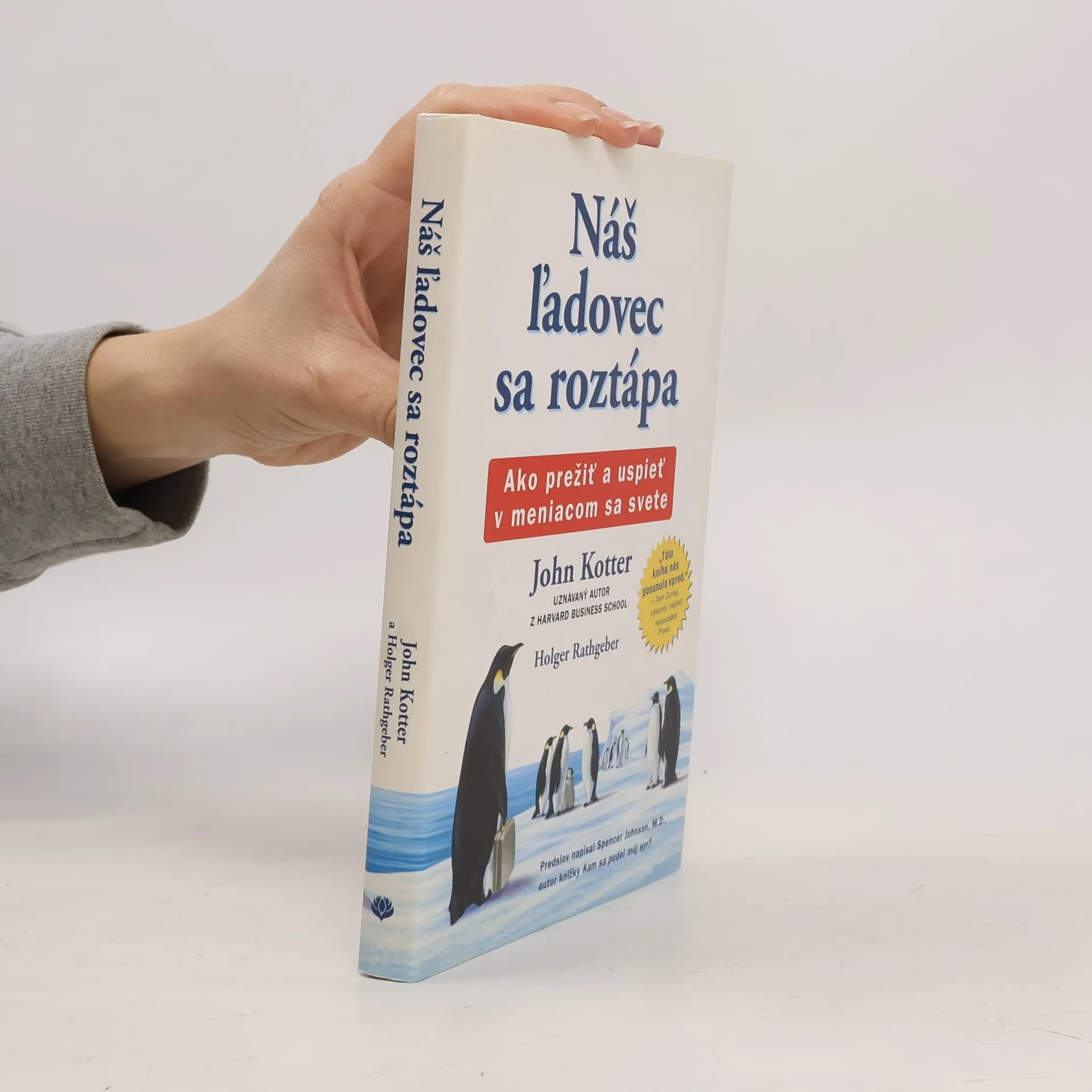 Náš ľadovec sa roztápa je jednoduchým príbehom o úspechu vo svete, ktorý ustavične podlieha zmenám. Je to príbeh o kolónii tučniakov z Antarktídy, ktorá žije dlhé roky nezmeneným spôsobom a ktorá zistí, že ich domov ohrozuje potenciálne katastrofický problém. John Kotter, guru vrcholového manažmentu a organizačných zmien na Harvard Business School, dokazuje v knihe s pomocou výstižnej bájky, ako sa dá pomocou metódy ôsmich krokov dosiahnuť zmena v každej spoločnosti.