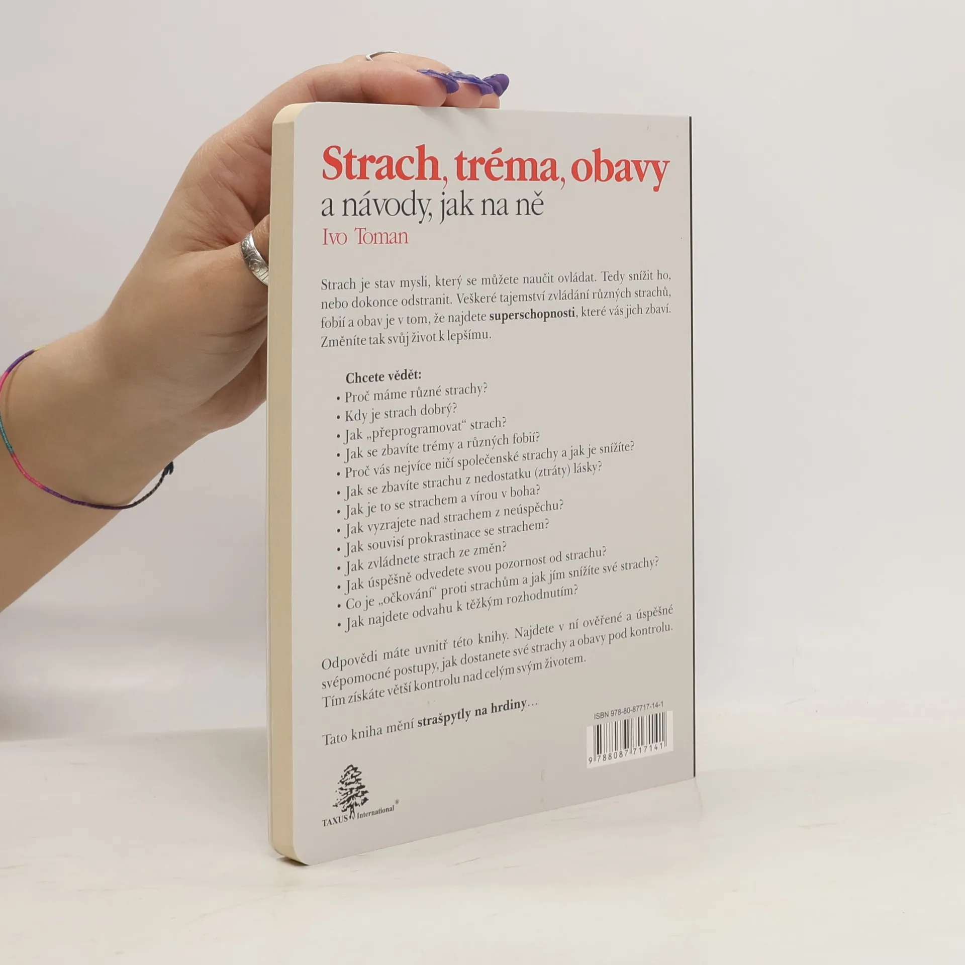Strach je stav mysli, který se můžete naučit ovládat. Tedy snížit ho, nebo dokonce odstranit. Veškeré tajemství zvládání různých strachů, fobií a obav je v tom, že najdete superschopnosti, které vás jich zbaví. Změníte tak svůj život k lepšímu. Chcete vědět: • Proč máme různé strachy? • Kdy je strach dobrý? • Jak "přeprogramovat" strach? • Jak se zbavíte trémy a různých fobií? • Proč vás nejvíce ničí společenské strachy a jak je snížíte? • Jak se zbavíte strachu z nedostatku (ztráty) lásky? • Jak je to se strachem a vírou v boha? • Jak vyzrajete nad strachem z neúspěchu? • Jak souvisí prokrastinace se strachem? • Jak zvládnete strach ze změn? • Jak úspěšně odvedete svou pozornost od strachu? • Co je "očkování" proti strachům a jak jím snížíte své strachy? • Jak najdete odvahu k těžkým rozhodnutím? Odpovědi máte uvnitř této knihy. Najdete v ní ověřené a úspěšné svépomocné postupy, jak dostanete své strachy a obavy pod kontrolu. Tím získáte větší kontrolu nad celým svým životem. Tato kniha mění strašpytly na hrdiny…