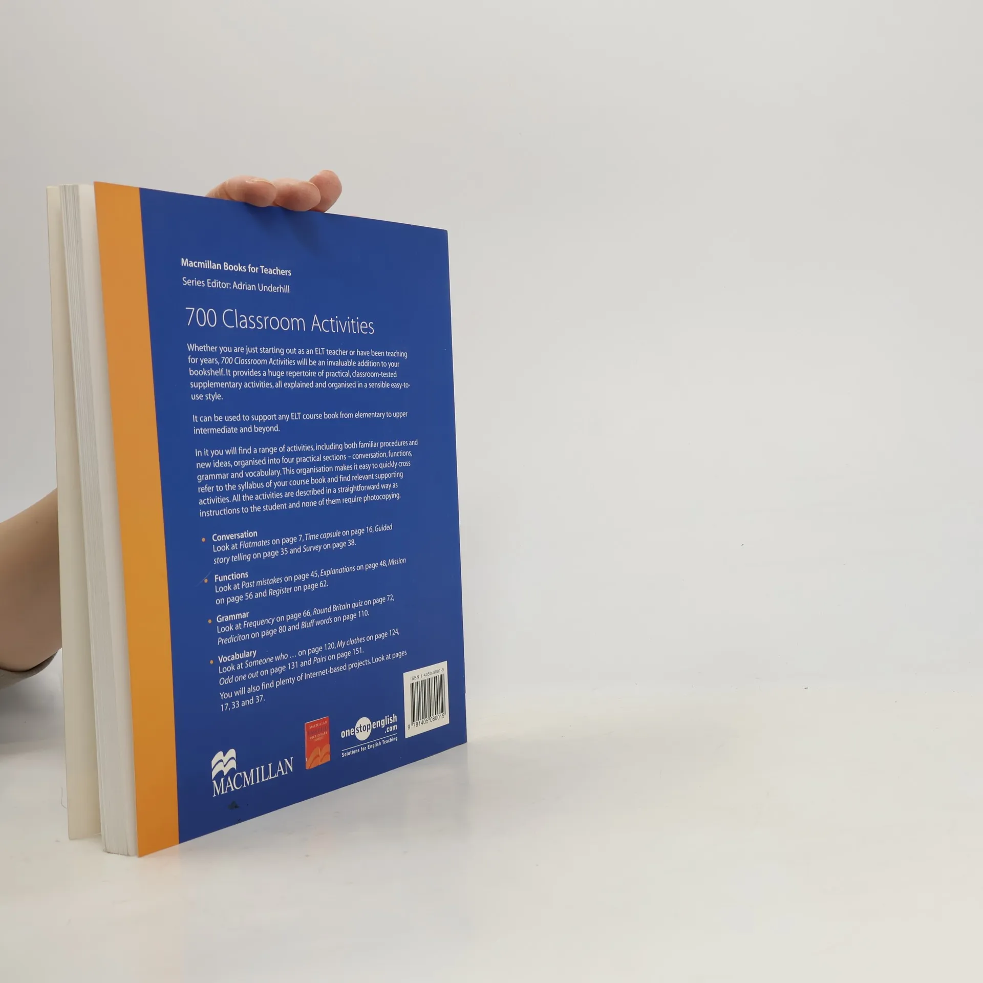 This volume provides 700 classroom-tested activities at levels from elementary to upper intermediate. The activities are organized in four sections - conversation, functions, grammar and vocabulary - making it easy to find something to supplement any coursebook.