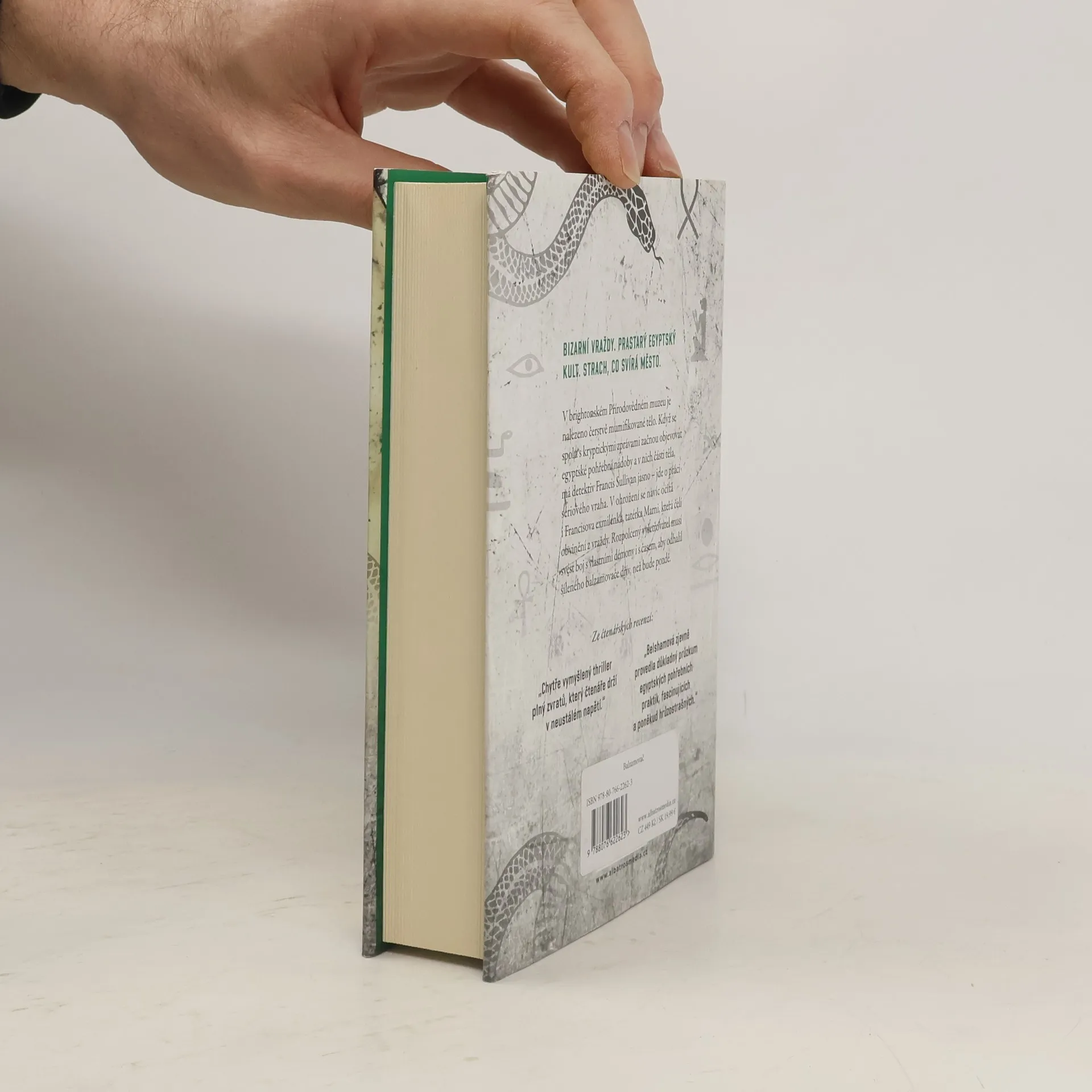 Bizarní vraždy. Prastarý kult. Strach, co svírá město. Knihám označeným zlatou pečetí Edice TOP věnujte zvýšenou pozornost! Předchází je pověst největších světových bestsellerů, které se dočkaly vřelého přijetí kritiky i čtenářů nebo získaly významná literární ocenění. TŘETÍ NAPÍNAVÝ PŘÍPAD INSPEKTORA FRANCISE SULLIVANA OD AUTORKY BESTSELLERU TATÉRKA. V brightonském Přírodovědném muzeu je nalezeno čerstvě mumifikované tělo. Když se spolu s kryptickými zprávami začnou objevovat egyptské pohřební nádoby a v nich části těla, má detektiv Francis Sullivan jasno – jde o práci sériového vraha. V ohrožení se navíc ocitá i Francisova exmilenka, tatérka Marni, která čelí obvinění z vraždy. Rozpolcený vyšetřovatel musí svést boj s vlastními démony i s časem, aby odhalil šíleného balzamovače dřív, než bude pozdě.