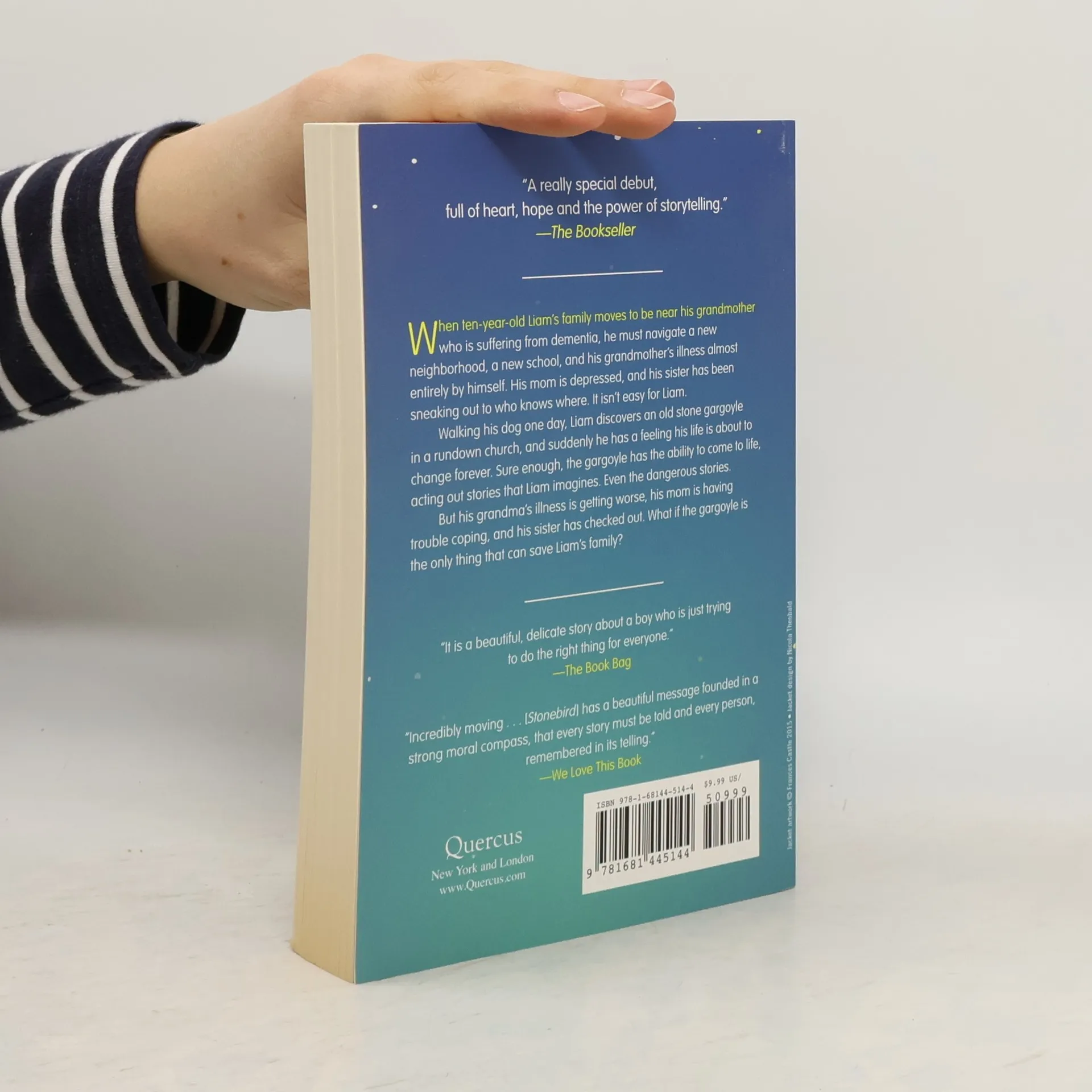 When 10-year-old Liam's family moves to be near his grandmother who is suffering from dementia, he's left to navigate his new neighborhood, school and grandmother's illness all by himself; His mom regularly looses herself in a bottle of wine, and his sister sneaks out to who knows where shortly after "wine o'clock"-as they've come to call it-strikes. Life it isn't easy. The one place he seems to find solace is a rundown church where he finds an over-sized gargoyle that keeps drawing him in. After learning that they were created to protect people from demons and evil spirits, he can't seem to shake the image of the old stone bird and its presence weaves itself into the stories Liam tells himself and others, so much so that Liam starts to believe that it might be alive. Shy Liam's only means of confidence during shared story time is to tell tales of the gargoyle. His classmate mock him at first but are soon are captivated by his storytelling, and his teacher's slight nods of encouragement fuel Liam's belief in the bird and lead him to think that she knows a thing or two about the old bird herself. As his home life gets harder and the bullies more relentless the gargoyle seemingly brings Liam's stories to life-swooping in to protect and defend him in the most unexpected ways. But is the old stone bird really alive, or is it just Liam's imagination finding ways to help him through a difficult time?