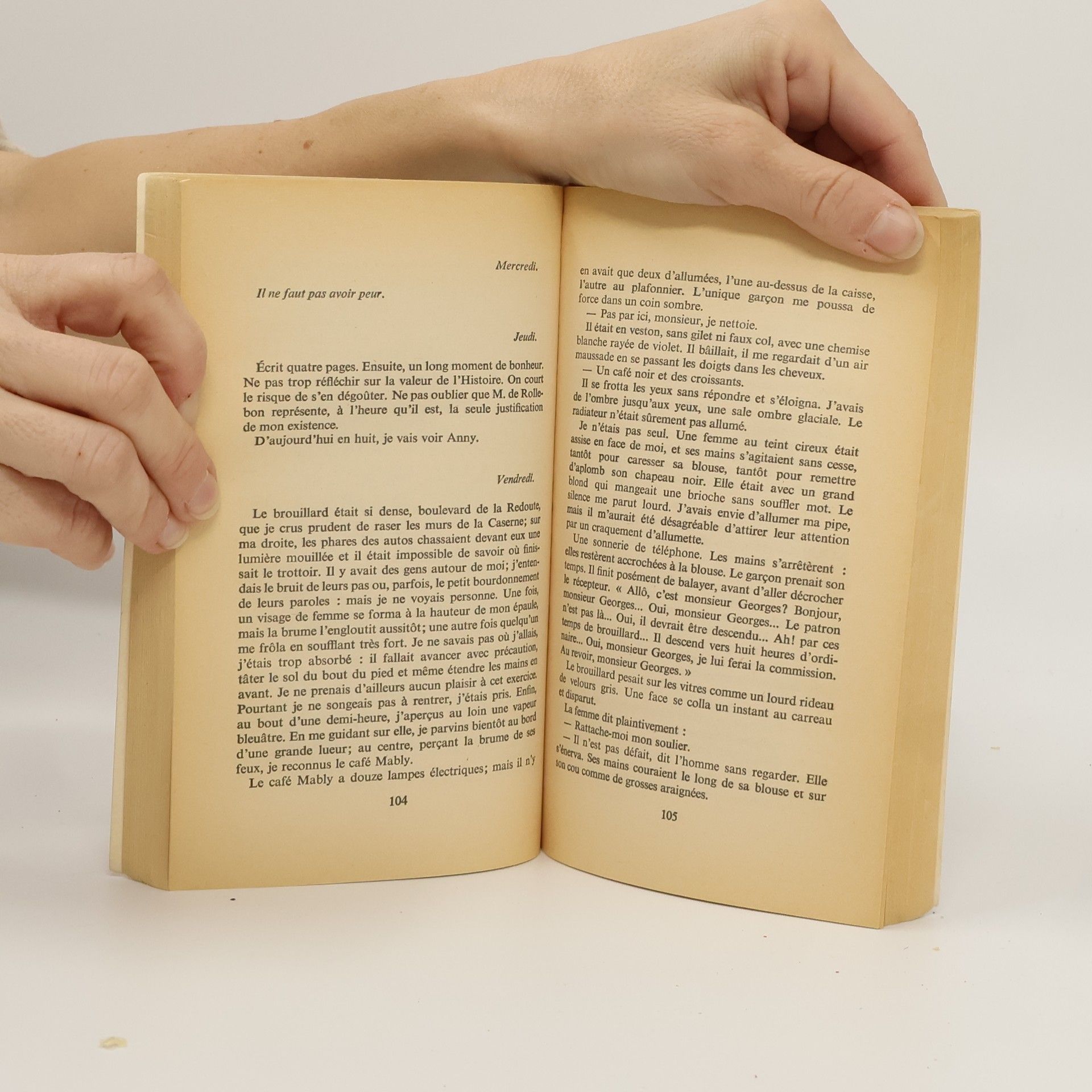 «Donc j'étais tout à l'heure au Jardin public. La racine du marronnier s'enfonçait dans la terre, juste au-dessous de mon banc. Je ne me rappelais plus que c'était une racine. Les mots s'étaient évanouis et, avec eux, la signification des choses, leurs modes d'emploi, les faibles repères que les hommes ont tracés à leur surface. J'étais assis, un peu voûté, la tête basse, seul en face de cette masse noire et noueuse entièrement brute et qui me faisait peur. Et puis j'ai eu cette illumination.Ça m'a coupé le souffle. Jamais, avant ces derniers jours, je n'avais pressenti ce que voulait dire "exister"».