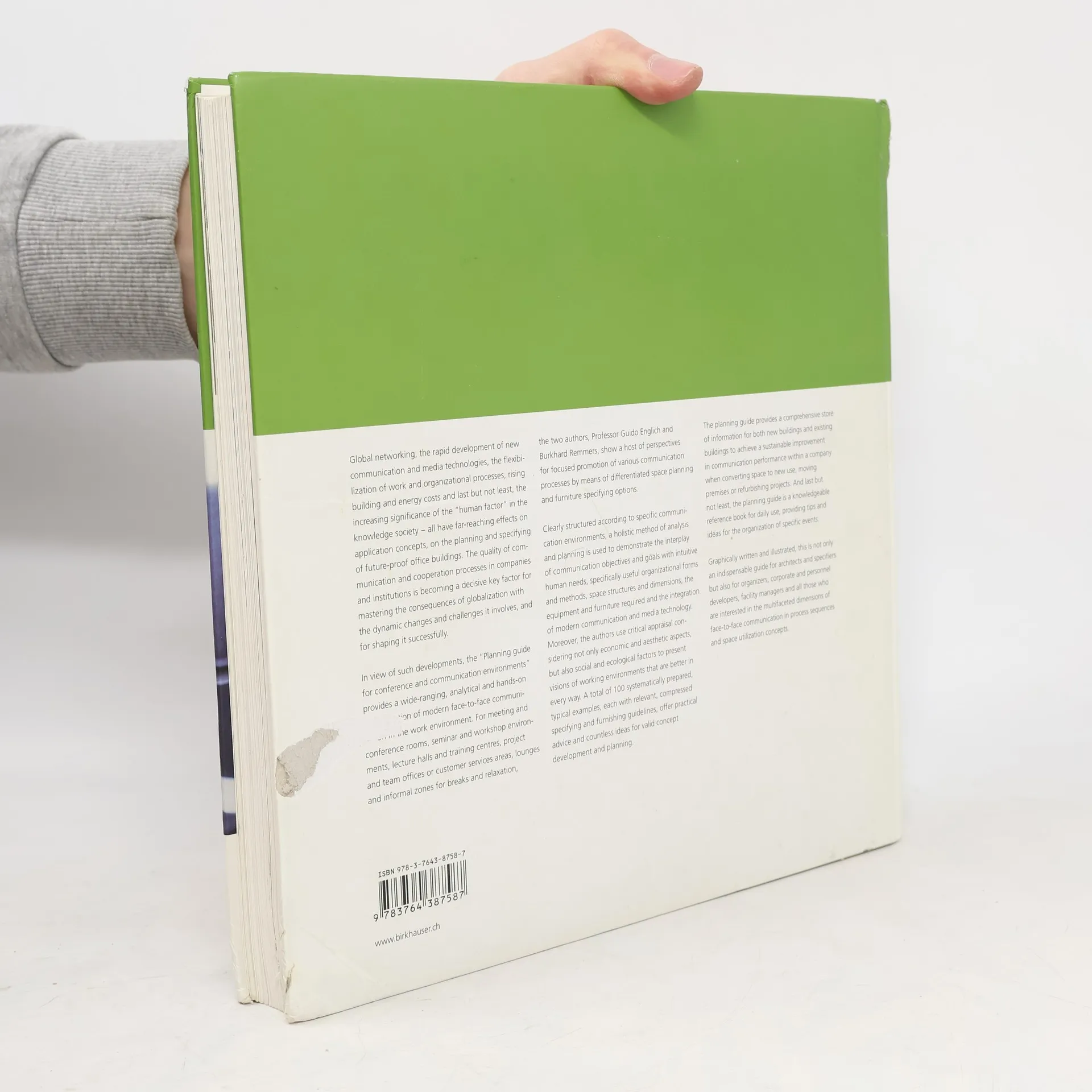 Englich and Remmers provide a comprehensive, analytical, and programmatic introduction to face-to-face communication in the work world. Against the backdrop of globalization, with its dynamic transformations of office environments and worldwide digital networks, they analyze the strategic significance of the various communication processes for organizational and corporate development. They show how the motives and aims of communication, the organizational forms and procedures appropriate in a given case, the size and arrangement of spaces, the required capabilities of furniture and furnishings, and modern communications and media technology all condition and influence one another. Their integrated and user-oriented approach to analysis and planning enables architects, interior designers, and facility managers to foster communication processes, structure them sensibly, and avoid unnecessary friction and needless follow-up costs, all through proper planning.