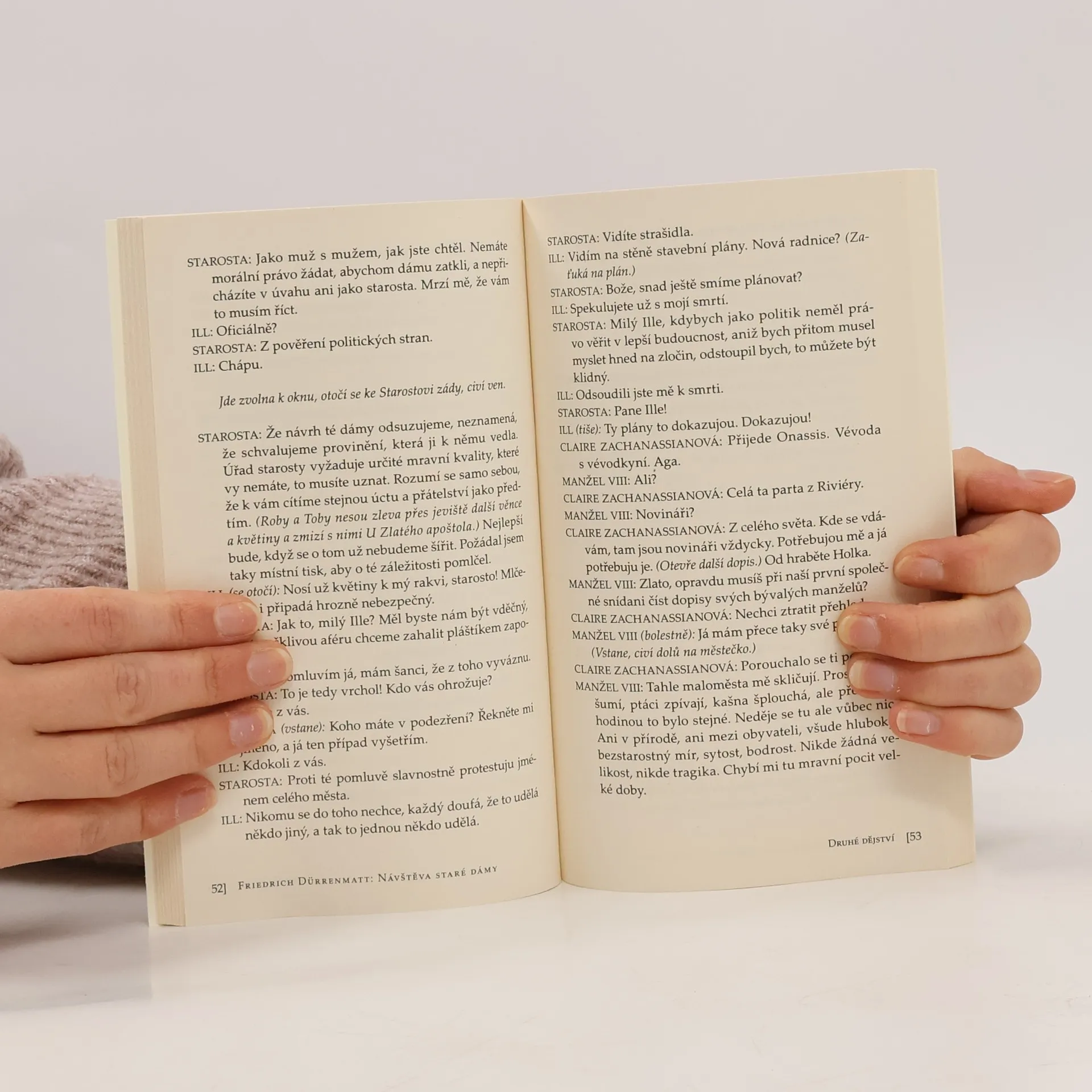 Modelová hra, která spojuje prvky komické a tragické, svého autora proslavila. Milionářka Klára Zachanassianová se vrací do svého rodného chudobného městečka a chce se pomstít své lásce z mládí Alfredu Illovi. Přistoupí obyvatelé městečka na její nabídku zabít ho za miliardovou odměnu? Hra vychází v překladu Jiřího Stacha v edici D jako její 139. svazek.