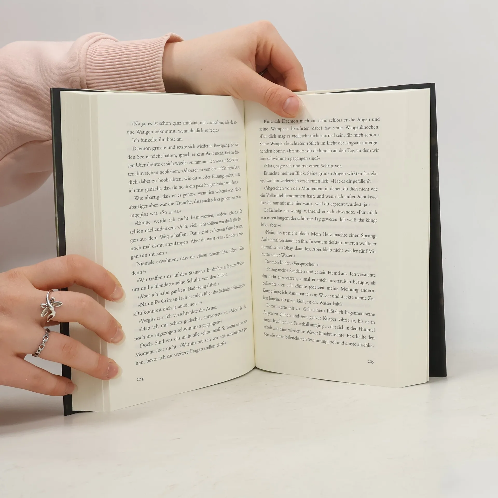 Ein dunkles Geheimnis scheint über dem winzigen Städtchen zu liegen, in das die siebzehnjährige Katy gerade erst umgezogen ist. Im umliegenden Gebirge sollen merkwürdige Lichter gesehen worden sein, leuchtende Menschengestalten ... Viel schlimmer findet die leidenschaftliche Buchbloggerin Katy jedoch, dass die nächste Bibliothek meilenweit weg ist und sie kein Internet hat. Bis sie beschließt, bei ihren Nachbarn zu klingeln und ein Junge die Tür öffnet, so düster und geheimnisvoll wie der Ort selbst: Daemon Black.