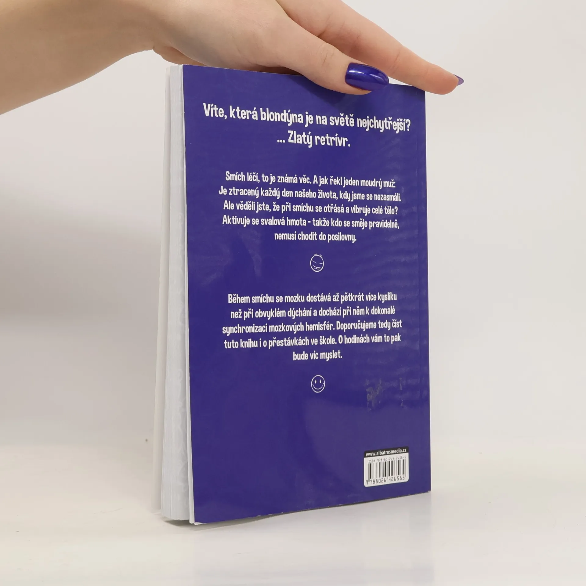 Ilustrovaná kniha plná vtipů udělá radost všem. Ať už se začtete do vtipů o Pepíčkovi, ze školy, o prarodičích, z pohádek nebo dalších, pořádně se zasmějete a budete mít dobrou náladu. Věděli jste, že během smíchu se mozku dostává až 5x více kyslíku než při obvyklém dýchání a dochází při něm k dokonalé synchronizaci mozkových hemisfér? Doporučujeme tedy číst tuto knihu i o přestávkách ve škole. O hodinách vám to pak bude víc myslet.