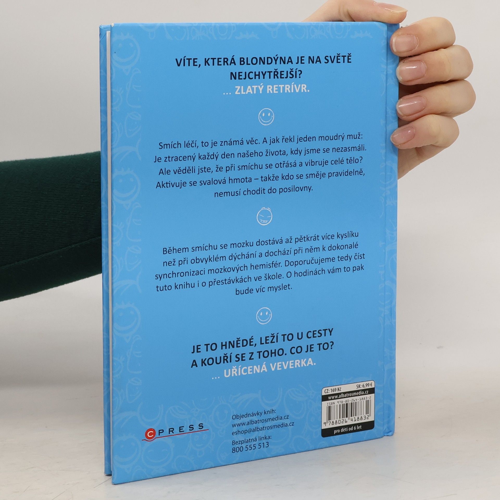 Ilustrovaná kniha plná vtipů udělá radost všem. Ať už se začtete do vtipů o Pepíčkovi, ze školy, o prarodičích, z pohádek nebo dalších, pořádně se zasmějete a budete mít dobrou náladu. Věděli jste, že během smíchu se mozku dostává až 5x více kyslíku než při obvyklém dýchání a dochází při něm k dokonalé synchronizaci mozkových hemisfér? Doporučujeme tedy číst tuto knihu i o přestávkách ve škole. O hodinách vám to pak bude víc myslet.