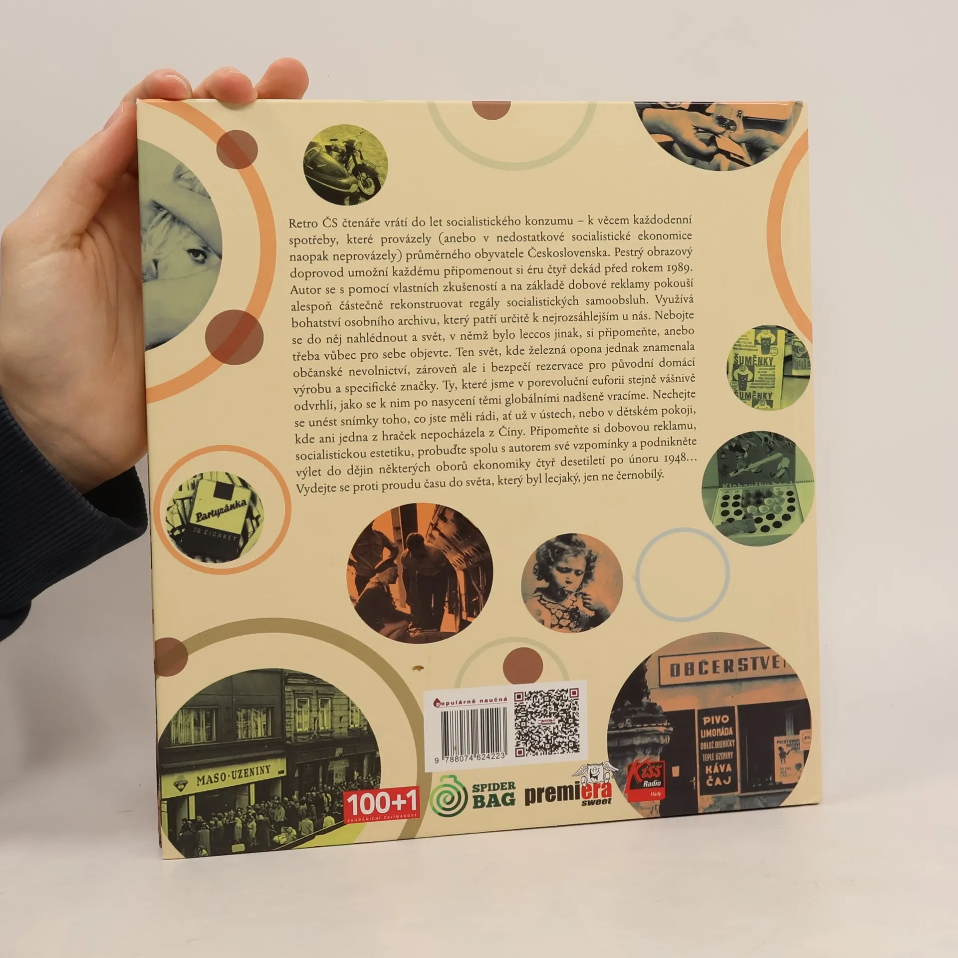 Co bylo (a nebylo) za reálného socialismu. Retro ČS čtenáře vrátí do let socialistického konzumu – k věcem každodenní spotřeby, které provázely (anebo v nedostatkové socialistické ekonomice naopak neprovázely) průměrného obyvatele Československa. Pestrý obrazový doprovod umožní každému připomenout si éru čtyř dekád před rokem 1989. Autor s pomocí vlastních zkušeností a na základě dobové reklamy alespoň částečně rekonstruuje regály socialistických samoobsluh. Využívá bohatství osobního archivu, který patří určitě k nejrozsáhlejším u nás. Nebojte se do něj nahlédnout a svět, v němž bylo leccos jinak, si připomeňte, anebo třeba vůbec pro sebe objevte. Ten svět, kde železná opona jednak znamenala občanské nevolnictví, zároveň ale i bezpečí rezervace pro původní domácí výrobu a specifické značky. Ty, které jsme v porevoluční euforii stejně vášnivě odvrhli, jako se k nim po nasycení těmi globálními nadšeně vracíme. Nechejte se unést snímky toho, co jste měli rádi, ať už v ústech, nebo v dětském pokoji, kde ani jedna z hraček nepocházela z Číny. Připomeňte si dobovou reklamu, socialistickou estetiku, probuďte spolu s autorem své vzpomínky a podnikněte výlet do dějin některých oborů ekonomiky čtyř desetiletí po únoru 1948…