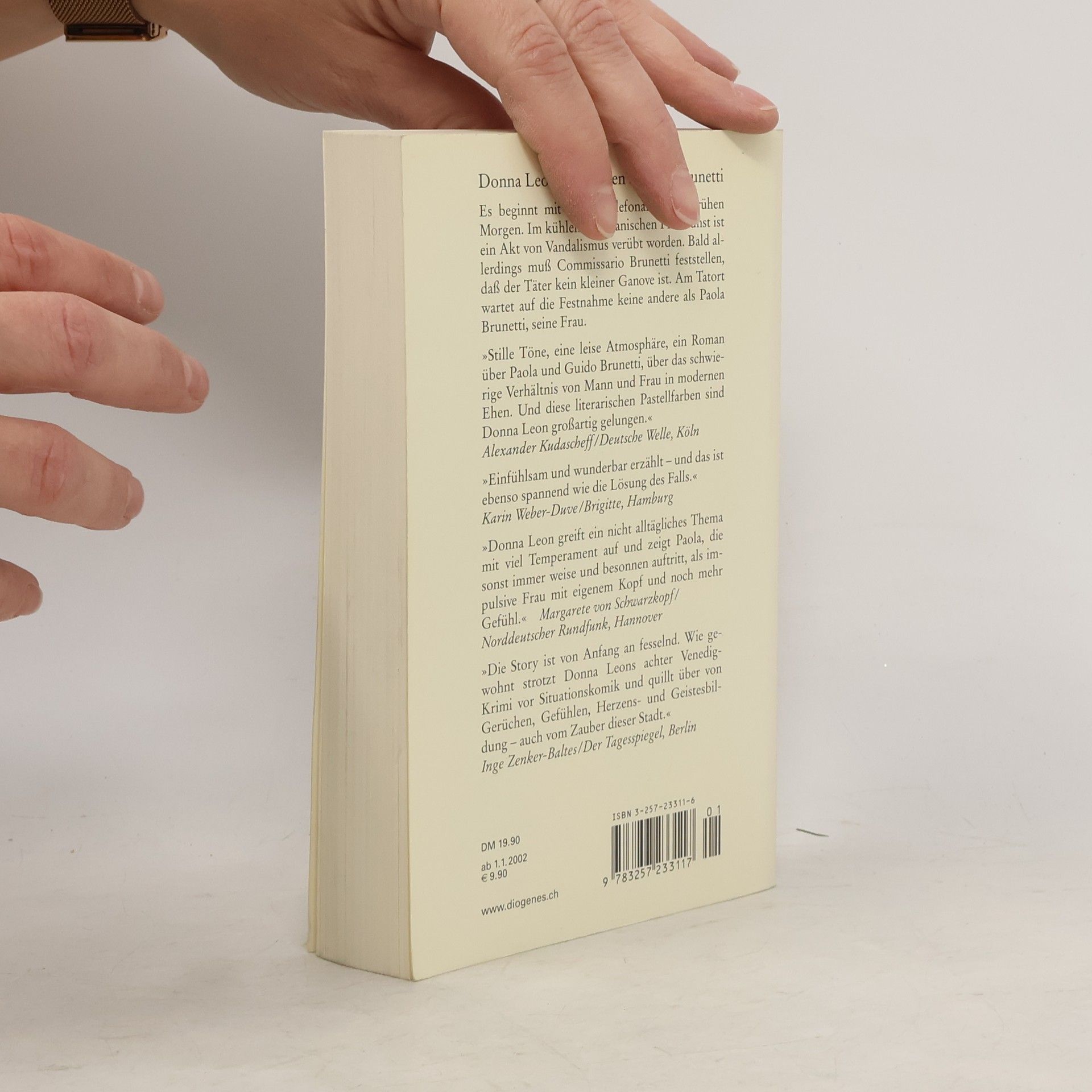 Es beginnt mit einem Telefonanruf am frühen Morgen. Im kühlen venezianischen Frühdunst ist ein Akt von Vandalismus verübt worden. Bald allerdings muß Commissario Brunetti feststellen, dass der Täter kein kleiner Ganove ist. Am Tatort wartet auf die Festnahme keine andere als Paola Brunetti, seine Frau.