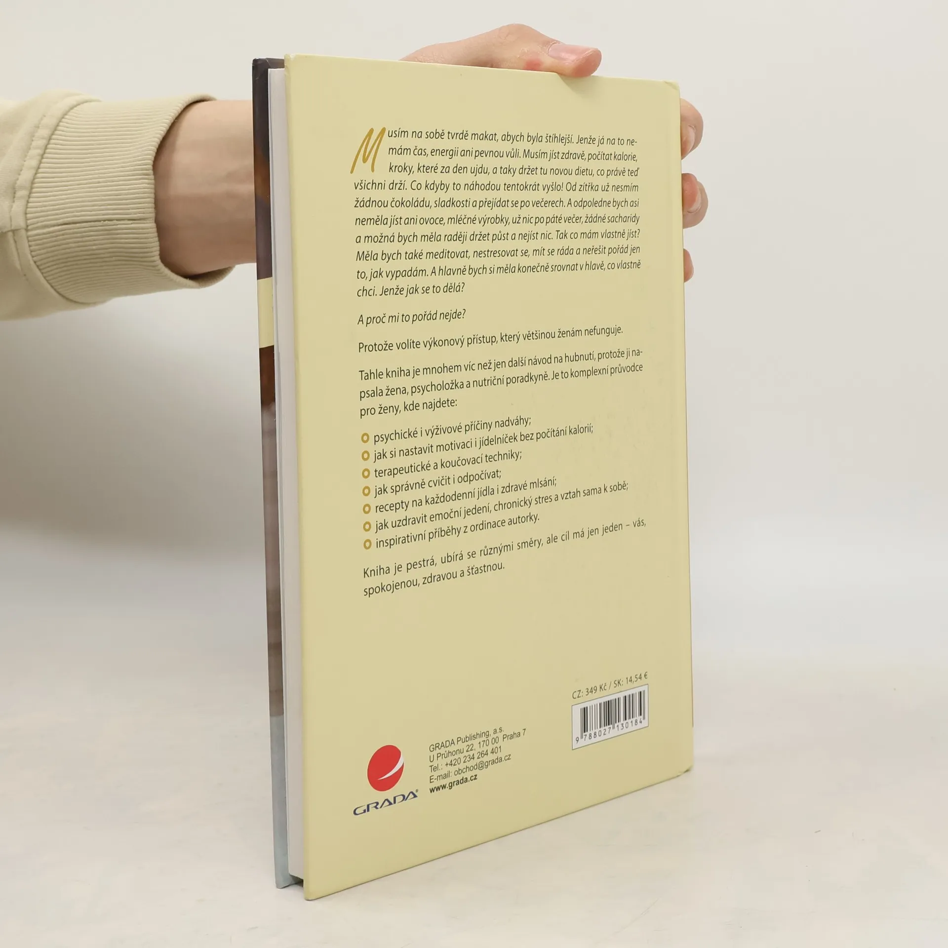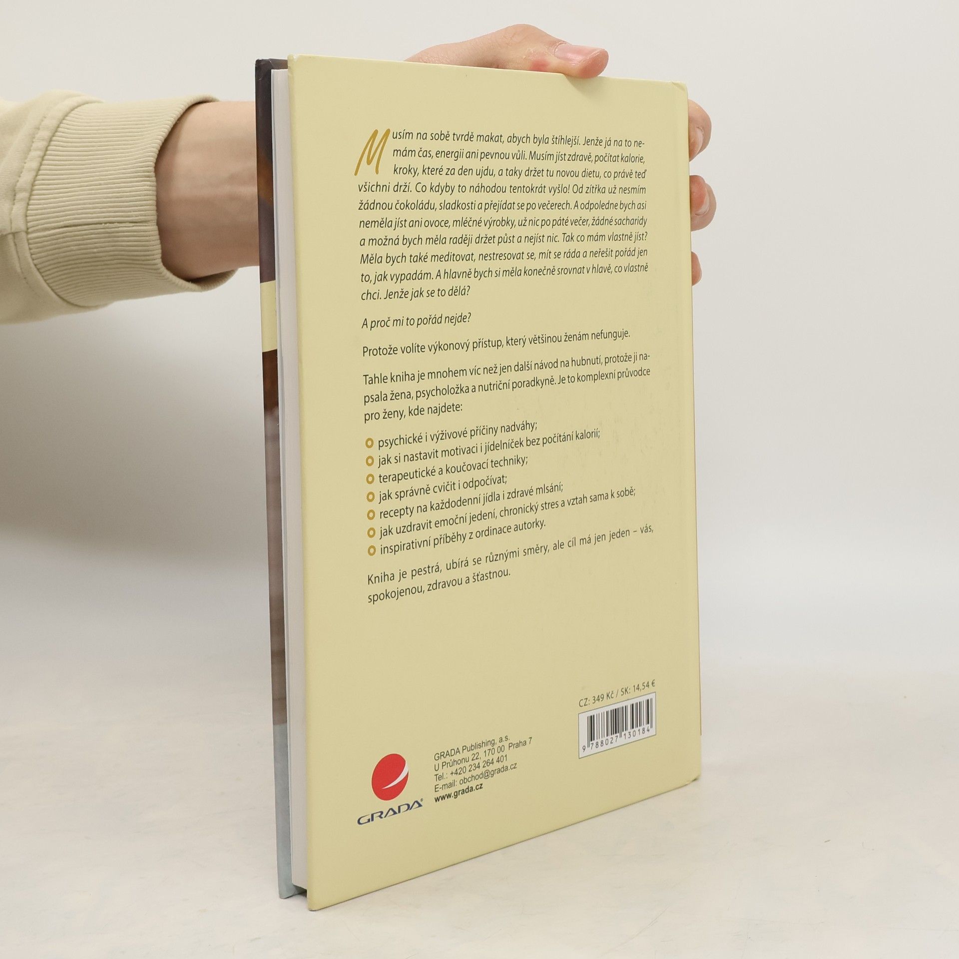 Tahle kniha je mnohem víc než jen další návod na hubnutí, protože ji napsala žena, psycholožka a nutriční poradkyně. Je to komplexní průvodce pro ženy, kde najdete: psychické i výživové příčiny nadváhy; jak si nastavit motivaci i jídelníček bez počítání kalorií; terapeutické a koučovací techniky; jak správně cvičit i odpočívat; recepty na každodenní jídla i zdravé mlsání; jak uzdravit emoční jedení, chronický stres a vztah sama k sobě; inspirativní příběhy z ordinace autorky. Kniha je pestrá, ubírá se různými směry, ale cíl má jen jeden – vás, spokojenou, zdravou a šťastnou.