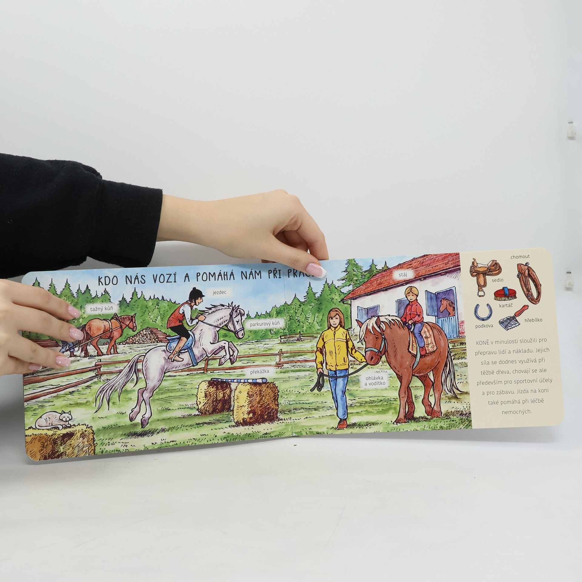 Kdo nám dává mléko? Kdo nám dává vlnu? Kdo nás vozí a pomáhá nám při práci? kdo nám dává vejce a kdo hlídá dům? Knížkové leporelo s veselými obrázky ve kterém děti poznají, čím jsou užitečná zvířátka na farmě.