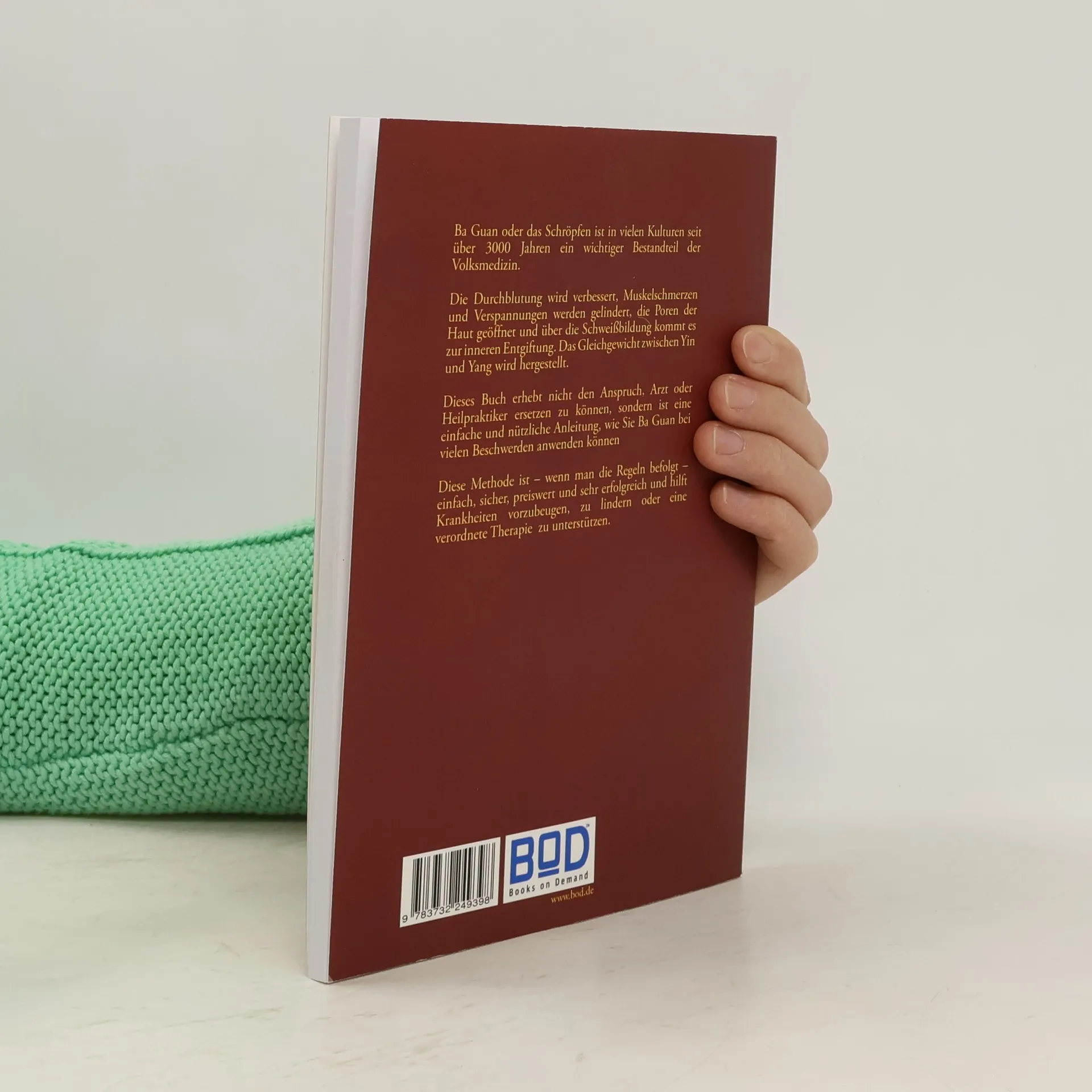 Ba Guan oder das Schröpfen ist in vielen Kulturen seit über 3000 Jahren ein wichtiger Bestandteil der Volksmedizin. Die Durchblutung wird verbessert, Muskelschmerzen und Verspannungen werden gelindert, die Poren der Haut geöffnet und über die Schweißbildung kommt es zur inneren Entgiftung. Das Gleichgewicht zwischen Yin und Yang wird hergestellt. Dieses Buch erhebt nicht den Anspruch, Arzt oder Heilpraktiker ersetzen zu können, sondern ist eine einfache und nützliche Anleitung, wie Sie Ba Guan bei vielen Beschwerden anwenden können Diese Methode ist - wenn man die Regeln befolgt - einfach, sicher, preiswert und sehr erfolgreich und hilft Krankheiten vorzubeugen, zu lindern oder eine verordnete Therapie zu unterstützen.