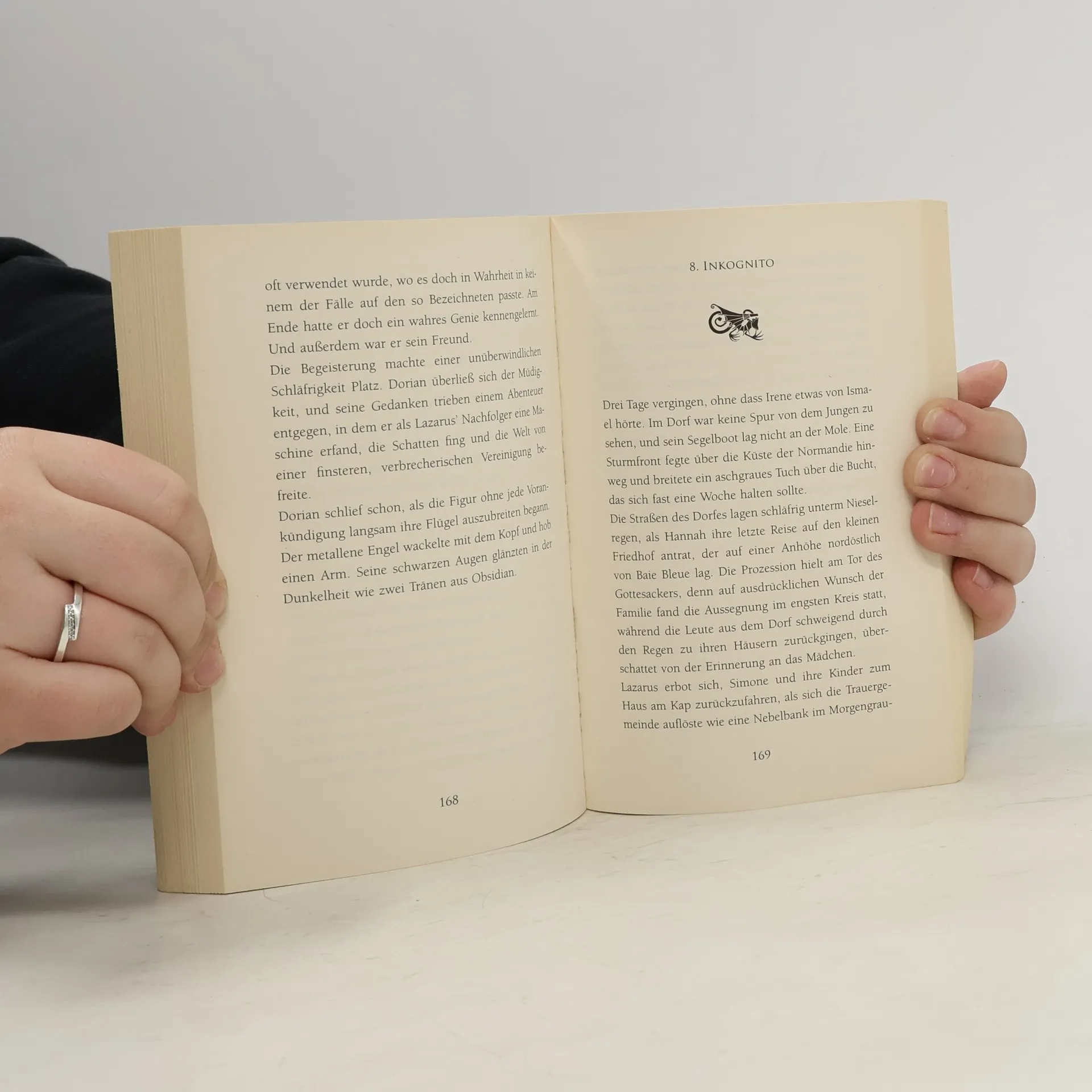 Es kommt immer eine Zeit, in der selbst der schrecklichste Albtraum ein Ende nimmt und nur noch als Erinnerung fortlebt. Ismael schreibt Erinnerungen an die grausamen Erlebnisse des Sommers 1937 nieder: Die vierzehnjährige Irene und ihr Bruder finden durch die Anstellung ihrer Mutter bei Lazarus Jann an der normannischen Küste ein vermeintlich sicheres Zuhause. Doch der Spielzeugfabrikant empfängt sie nicht herzlich. Sein Anwesen Cravenmoore, bevölkert von lebendig wirkenden mechanischen Geschöpfen, fesselt die Ankömmlinge wie ein hypnotischer Traum. Als Irene und Ismael ihre Liebe entdecken, wird die Idylle durch den mysteriösen Mord an einem Mädchen im Wald bei Cravenmoore gestört. Ist dies der Beginn einer Mordserie, die sich vor Jahren ereignete? Hängt alles mit den Septemberlichtern der Leuchtturminsel zusammen, wo der Geist einer Ertrunkenen umherirrt? Und ist Lazarus’ Erzählung über den Doppelgänger – ein „Schatten, der sich von seinem Besitzer löst“ – nur eine Geschichte? Was Irene und Ismael bei ihren Nachforschungen herausfinden, bringt sie an den Rand des Wahnsinns und in Lebensgefahr. Carlos Ruiz Zafón, gefeiert seit „Der Schatten des Windes“, zieht die Leser mit wohlgeformten Sätzen in den Bann dieser Erzählung.