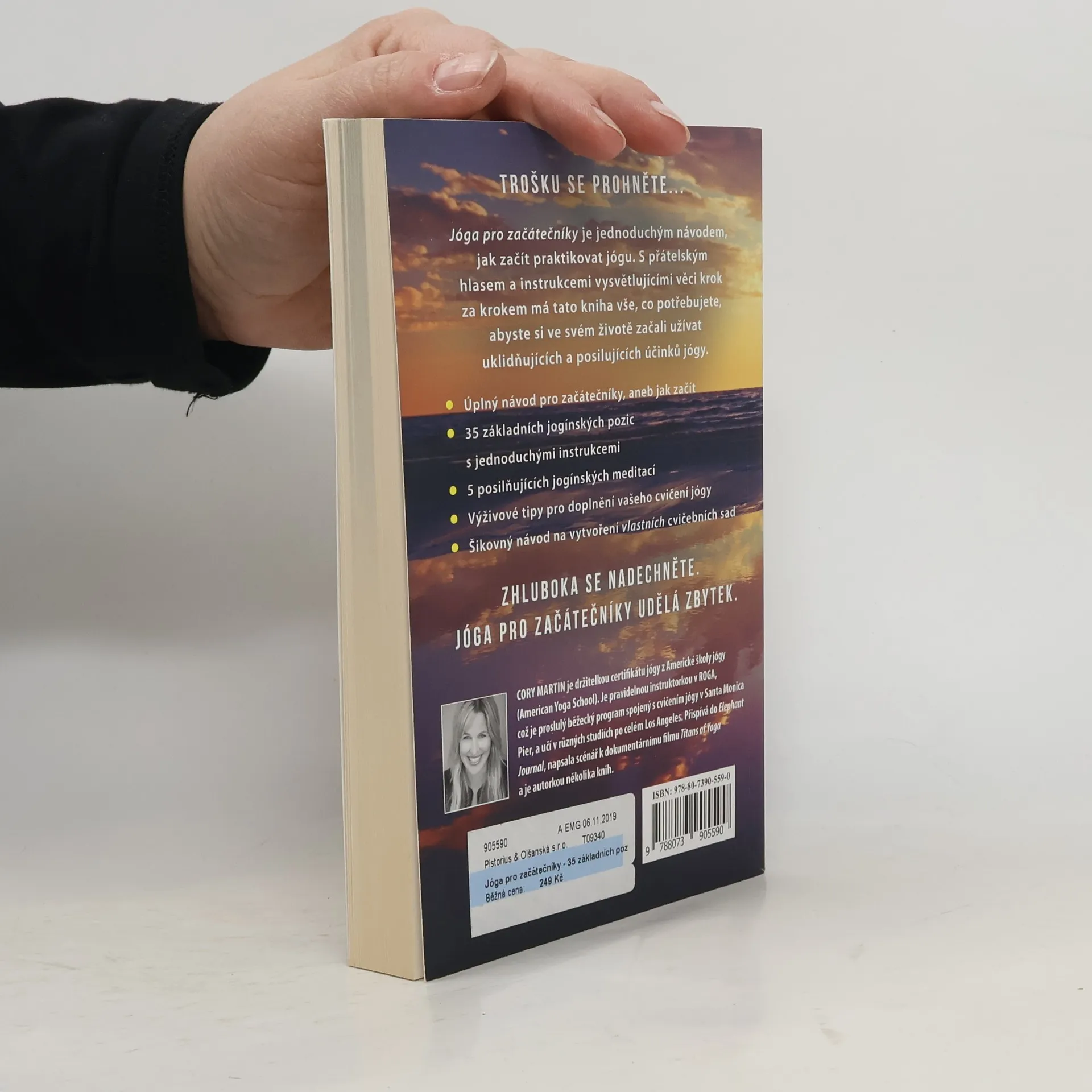 Naučte se základům jógy v klidu vašeho domova. Jóga pro začátečníky je základním průvodcem, jak začít s jógou. Kniha je jednoduchým a srozumitelným návodem pro pochopení základů jógy. Seznámíte se s 35 základními pozicemi s pomocí srozumitelných ilustrací, s 5 regeneračními meditačními technikami a vhodnými potravinovými doplňky. Zhluboka se nadechněte. Jóga pro začátečníky se postará o zbytek. Cory Martin vystudovala obor Tvůrčí psaní na University of Southern California a studovala literaturu na Cambridge University v Anglii. Ve věku pětadvaceti let zcela propadla józe a pracuje jako instruktorka jógy v různých centrech po celém Los Angeles a je autorkou dokumentu „Mistři jógy“.