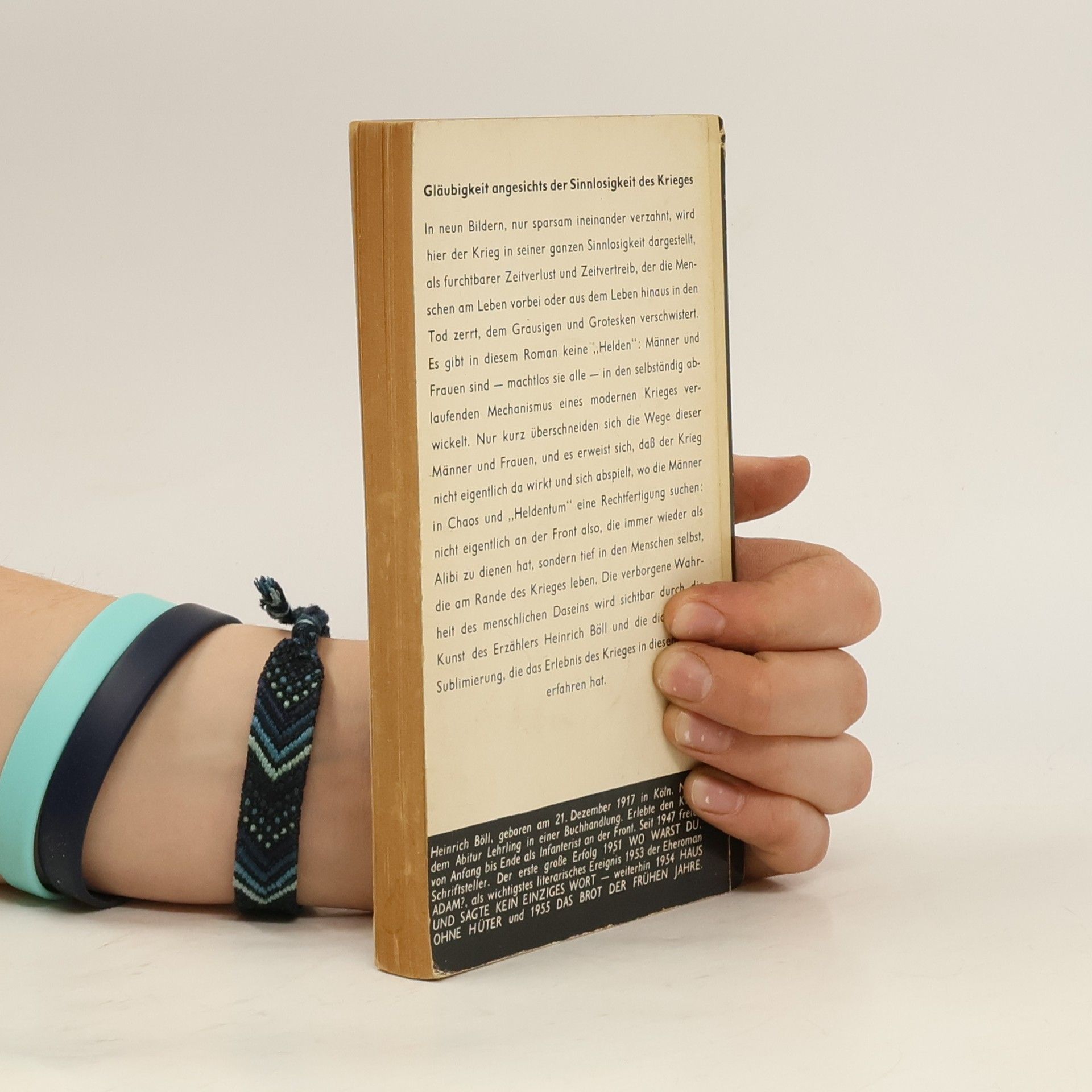 Eine Weltkatstrophe kann zu manchem dienen. Auch dazu, ein Alibi zu finden vor Gott. Wo warst du, Adam? »Ich war im Weltkrieg.« Theodor Haecker, »Tag- und Nachtbücher«, 31. März 1940In seinem frühen Roman schildert Heinrich Böll den Krieg als eine Krankheit. Es ist daher nur folgerichtig, daß er nicht die Mechanismen einer Schlacht beschreiben wollte, sondern den einzelnen Menschen in den Vordergrund stellt. Böll geht vom Detail aus und öffnet so den Blick auf das Ganze. Er zeichnet seine Gestalten, Landser und Generäle, SS-Führer und gehetzte Juden, Frauen und Mädchen im Hinterland, ohne zu verzerren oder zu idealisieren.Viele Bücher sind gegen den Krieg geschrieben worden. Aber nicht alle wurden so verstanden. Ungewollt ließen sie einen Rest von Sinngebung oder gar eine Faszination am Grauen und an der zerstörenden Gewalt des Krieges zu. Bölls Roman ist unmißverständlich. So macht zum Beispiel die Geschichte eines Wachkommandos bei einer Brücke, die von Partisanen gesprengt und von den Deutschen wieder aufgebaut wird, um gleich wieder vor den anrückenden Russen gesprengt zu werden, die organisierte Sinnlosigkeit des Krieges deutlicher als jedes grausige Schlachtenpanorama.