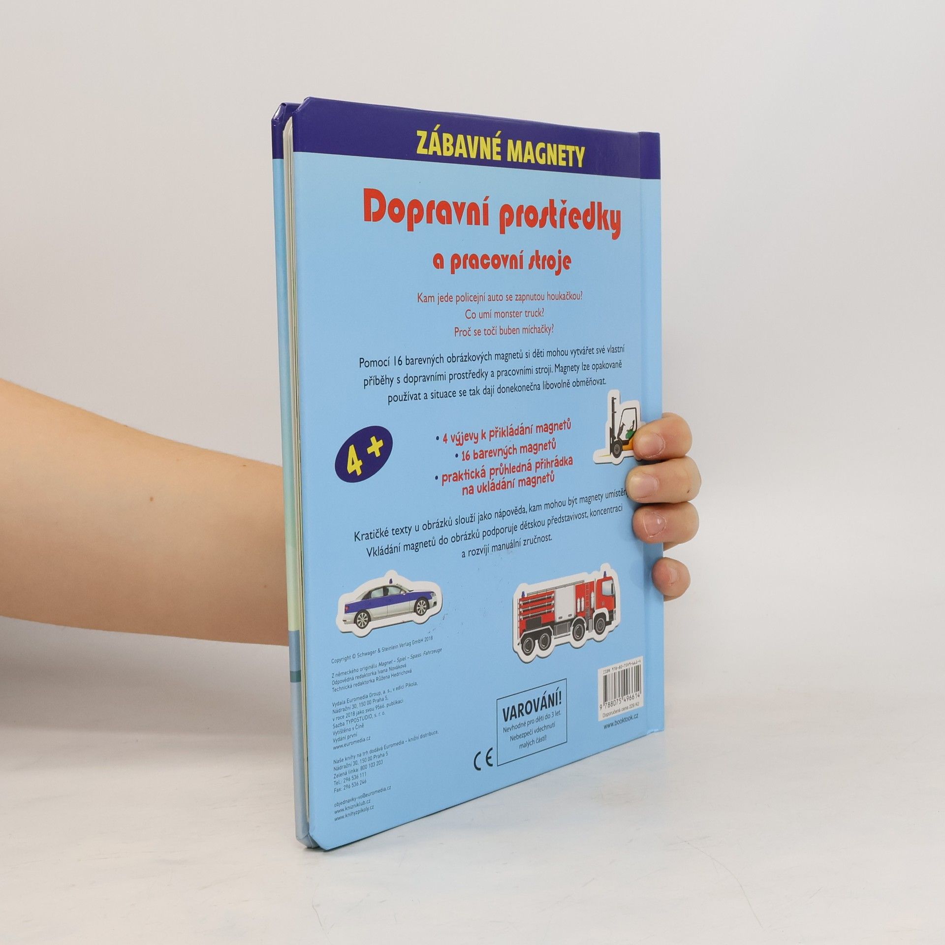 Pomocí 16 barevných obrázkových magnetů si děti mohou vytvářet své vlastní příběhy s dopravními prostředky a pracovními stroji. Magnety lze opakovaně používat a situace se tak dají donekonečna libovolně obměňovat. Kratičké texty u obrázků slouží jako nápověda, kam mohou být magnety umístěny. Vkládání magnetů do obrázků podporuje dětskou představivost, koncentraci a rozvíjí manuální zručnost.