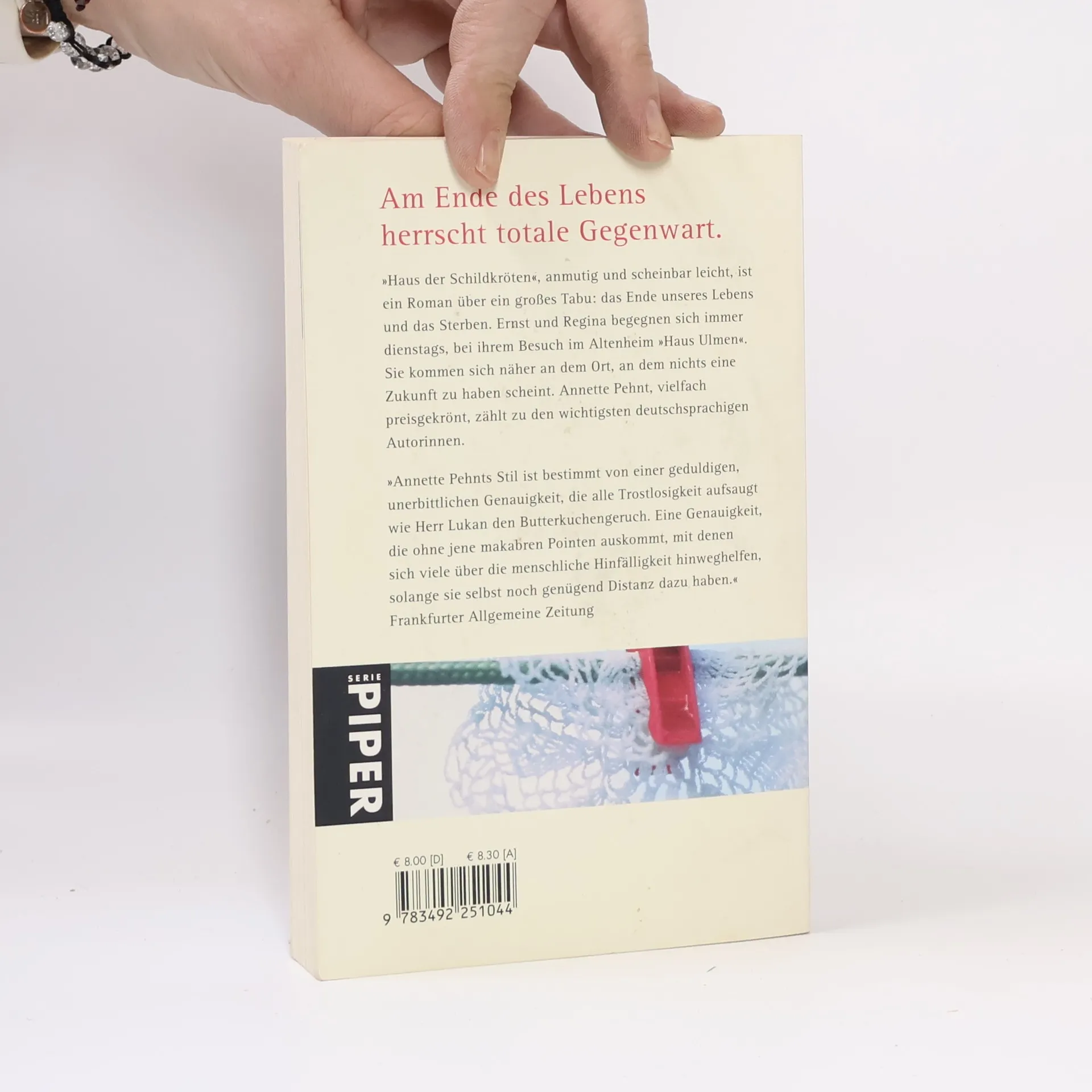 »Haus der Schildkröten«, anmutig und scheinbar leicht, ist ein Roman über ein großes Tabu: das Ende unseres Lebens und das Sterben. Ernst und Regina begegnen sich immer dienstags, bei ihrem Besuch im Altenheim »Haus Ulmen«. Sie kommen sich näher an dem Ort, an dem nichts eine Zukunft zu haben scheint. – Annette Pehnt, vielfach preisgekrönt, zählt zu den wichtigsten deutschsprachigen Autorinnen.