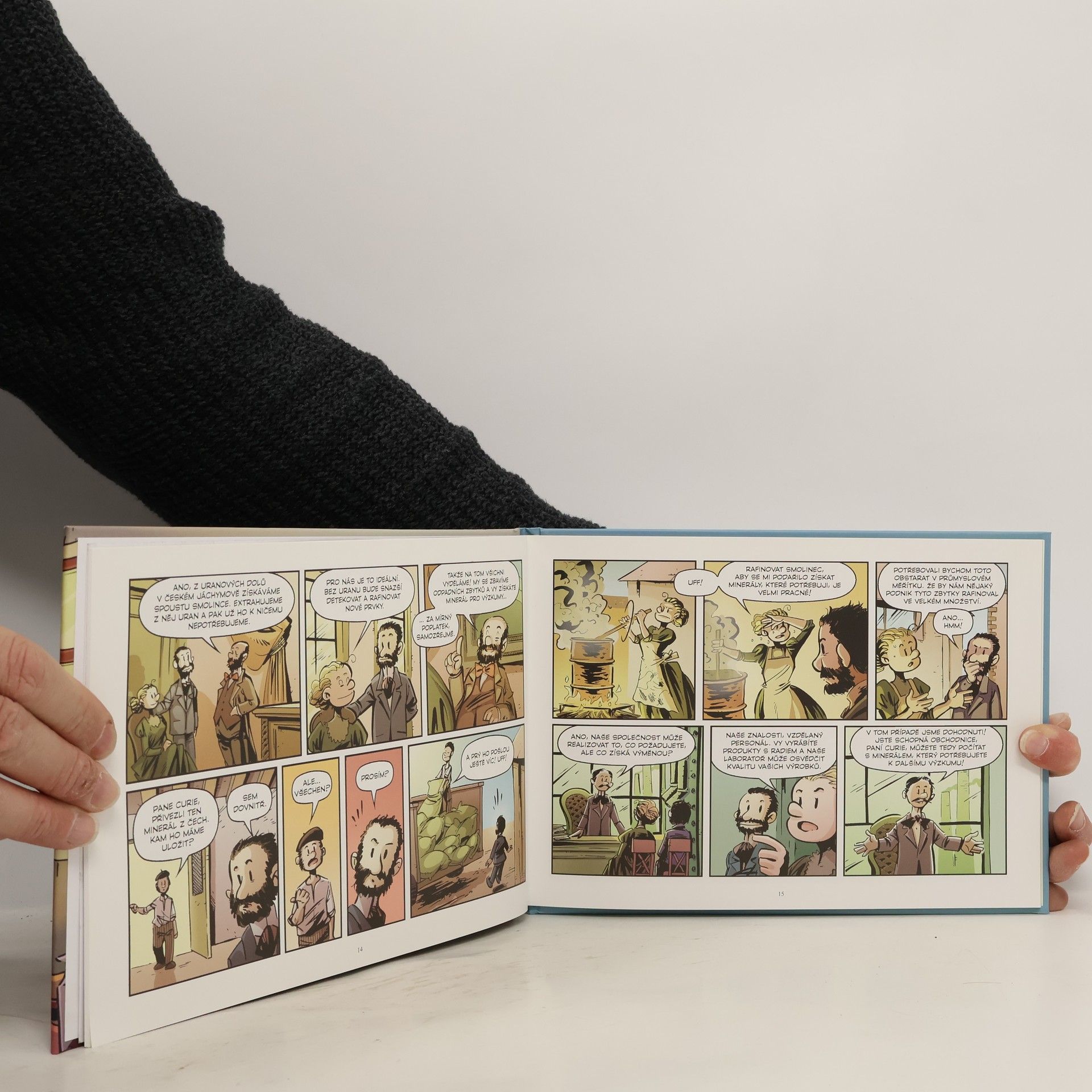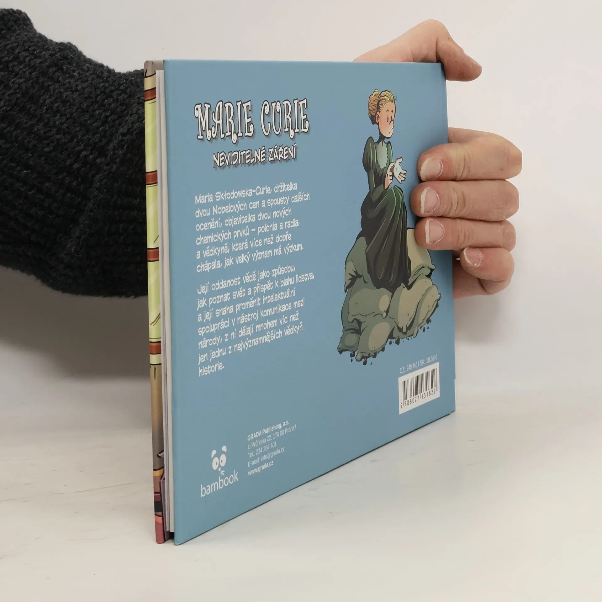 Marie Sklodowska Curie je držitelkou dvou Nobelových cen, objevitelkou prvků Polonia a Radia, radioaktivity a jednou z nevýznamnějších světových vědkyň. V komiksovém životopise zachycená už v raném věku jako nejmladší z pěti dětí. Příběh pak sleduje její vzdělávání ve Francii až k jejím převratným objevům. Soubor komiksově zpracovaných biografií zaměřující se na známá jména ve světě vědy (Luis Pasteur, Isaac Newton, Marie Curie, Albert Einstein) líčí určitou etapu života každé osobnosti i s podrobnostmi o jejích vědeckých objevech a životní práci. Autor předkládá nejen základní informace každé z postav, ale dotkne se také konceptů jejího výzkumu, jako je např. teorie relativity či objev záření. Tyto jednoduché formy seznámení se slavnými osobnostmi vědy mohou děti dovést k dalšímu zájmu o vědce i vědu.