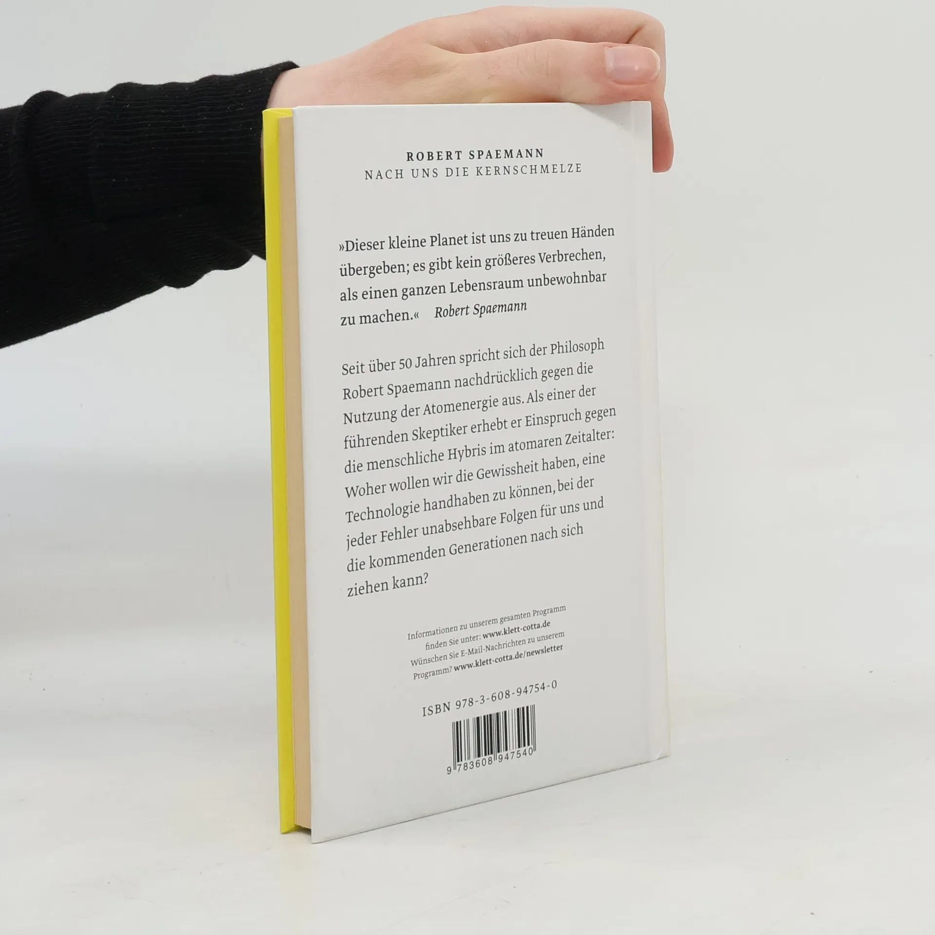 Seit über 50 Jahren spricht sich der Philosoph Robert Spaemann ausdrücklich gegen die Nutzung der Atomenergie aus. Als einer der führenden Skeptiker in dieser Debatte fühlt sich Robert Spaemann weniger durch politische Programme zu seiner Stellungnahme veranlasst, als vielmehr – philosophisch und theologisch – aus ethischen Gründen verpflichtet. Er erhebt Einspruch gegen die menschliche Hybris im atomaren Zeitalter: Woher nehmen wir die Gewissheit, eine Technologie handhaben zu können, bei der jeder Fehler, auch der kleinste, unabsehbare Folgen nach sich ziehen kann? »Dieser kleine Planet ist uns zu treuen Händen übergeben; es gibt kein größeres Verbrechen, als einen ganzen Lebensraum unbewohnbar zu machen.« Robert Spaemann