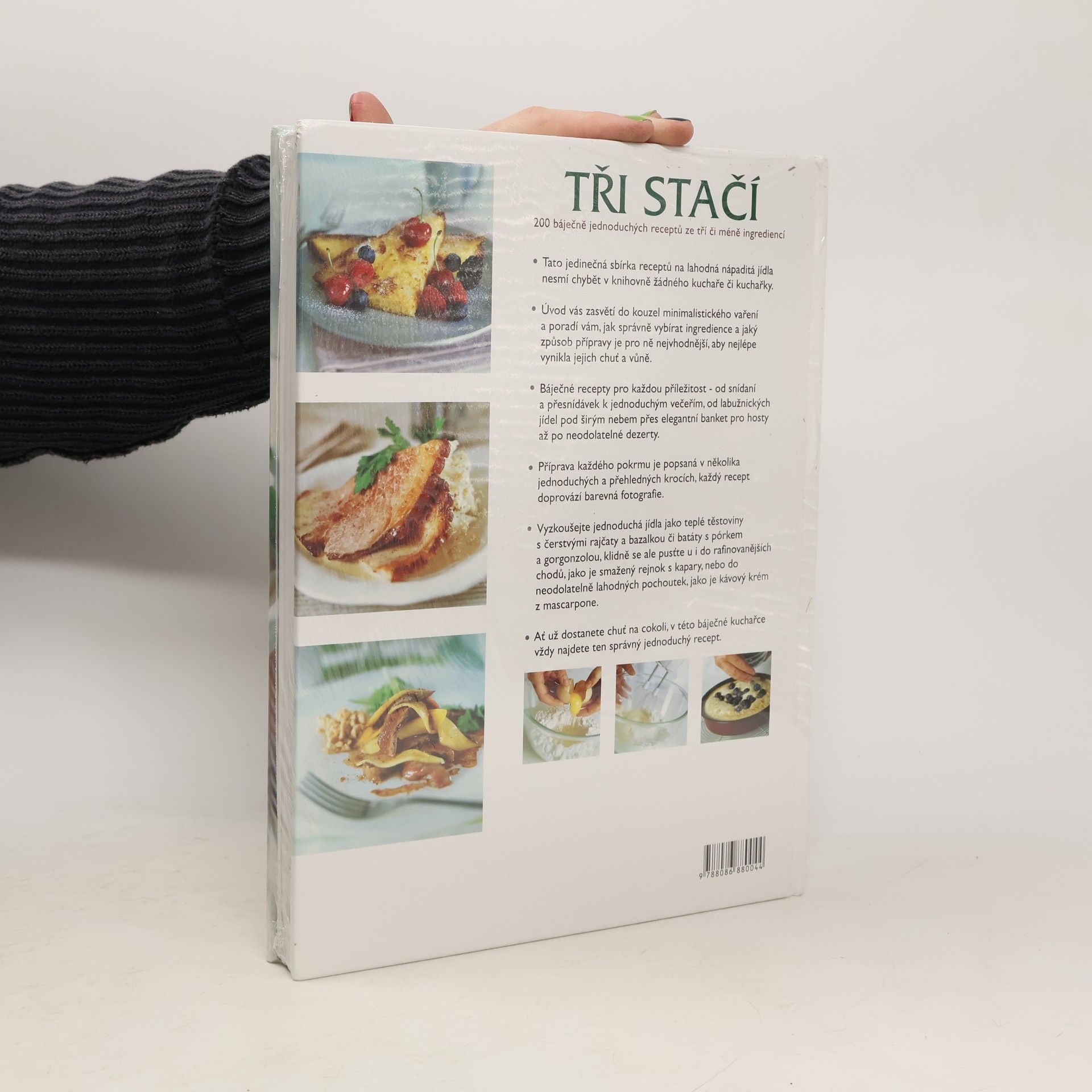 Už nikdy vás žádná návštěva nezaskočí a už nikdy nebudete muset složitě přemýšlet, jestli máte doma všechny potřebné suroviny Naše nevšední kuchařka TŘI STAČÍ vám poradí, jak si zásobit spíž, aby vám už nikdy nic nechybělo a napříště vám stačilo dokoupit ke každému jídlu pouhé tři ingredience, ze kterých zvládnete připravit mnoho skvělých chodů. Z nich pak jednoduše poskládáte vydatnou snídani, rychlý oběd i slavnostní večeři o několika chodech. Najdete tu recepty na rychlá jídla, která oceníte v časové tísni, ale i na vynikající obědy či večeře, na které budete sice potřebovat o něco více času, ale zato si vy i vaši blízcí báječně pochutnáte.