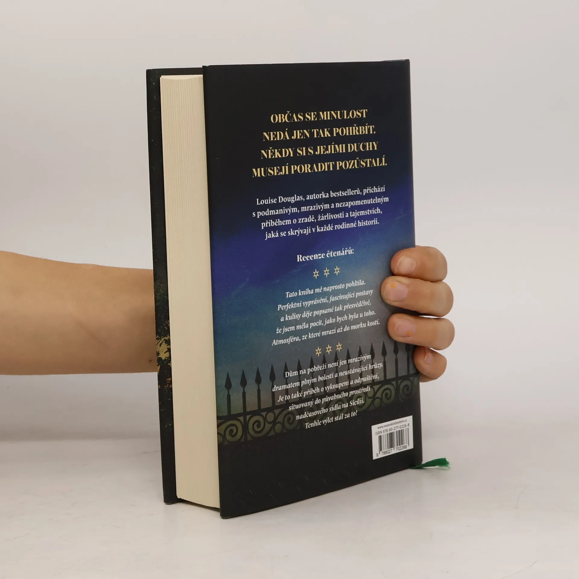 Edie se velice uleví, když její bývalá tchýně Anna zemře. Edie Annu viní z nehody, která jí zničila rodinu. Takže když ji Annina poslední vůle vyláká na Sicílii a do dlouho opuštěné Villa della Madonna del Mare, je jí jasné, o co Anně šlo. Má za to, že Anna i po své smrti tahá za nitky, aby ji dala opět dohromady se svým synem. Edie je proto odhodlaná odjet z Itálie co nejdřív. Ale ještě než to stihne, začne vila vydávat svá záhadná tajemství. Kdo jsou ty dívky na Anniných fotkách z dětství a proč někdo jednu z nich vyškrábal? Proč někdo nebo něco nechce, aby se zaobírali minulostí? Vila je místo, kde se staří duchové cítí doma. Ale jejich odkaz je potřeba uložit k věčnému spánku, aby Edie a Joe mohli jít dál... Autorka bestsellerů Louise Douglas se vrací s podmanivým, mrazivým a nezapomenutelným příběhem o zradě, žárlivosti a tajemstvích skrývajících se v každé rodinné historii.