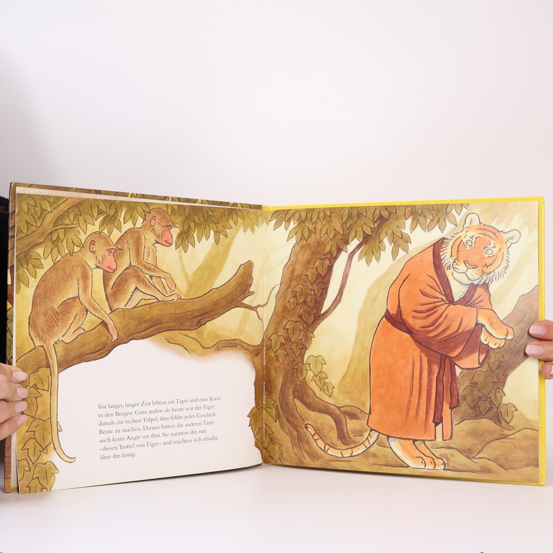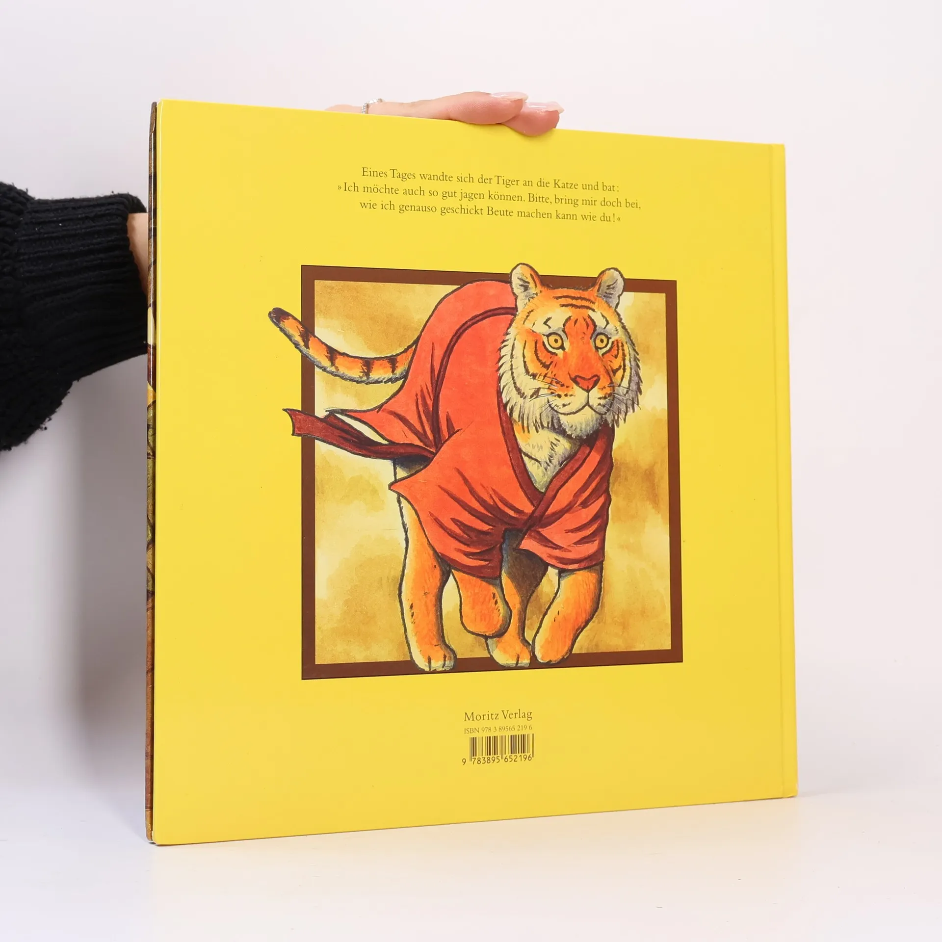 Tiger mögen keine Katzen. Woher das kommt, zeigt dieses Bilderbuch der Extraklasse. »Dieser Trottel von Tiger« nannten vor langer, langer Zeit die anderen Tiere den mächtigen Tiger, fehlte ihm doch jedes Geschick, Beute zu machen. Die Katze hingegen war als ausgezeichnete Jägerin hoch angesehen. Also bat der Tiger die Katze, ihm beizubringen, worauf es bei der Jagd ankommt. Und die Katze lehrte ihn das Anschleichen, das schnelle Rennen und den Sprung aus großer Höhe: »Jetzt habe ich dir alles beigebracht, was ich weiß.« Der Tiger ist jedoch alles andere als dankbar und will seine neu gewonnen Fähigkeiten als Erstes dazu nutzen – zu probieren, wie Katzen schmecken! Doch die Katze rettet sich auf einen Baum. Höhnisch ruft sie von dort oben: »Eins habe ich doch glatt vergessen, dir beizubringen: Wie man auf hohe Bäume klettert!« Dies erklärt, warum Tiger bis heute nicht auf Bäume klettern können und Katzen und Tiger Feinde sind. Diese traditionelle chinesische Fabel hat der japanische Bilderbuchkünstler Eitaro Oshima in ein beeindruckend klares und spannendes Bilderbuch verwandelt, das sich vortrefflich zum Vorlesen eignet und Kinder ganz in seinen Bann ziehen wird.