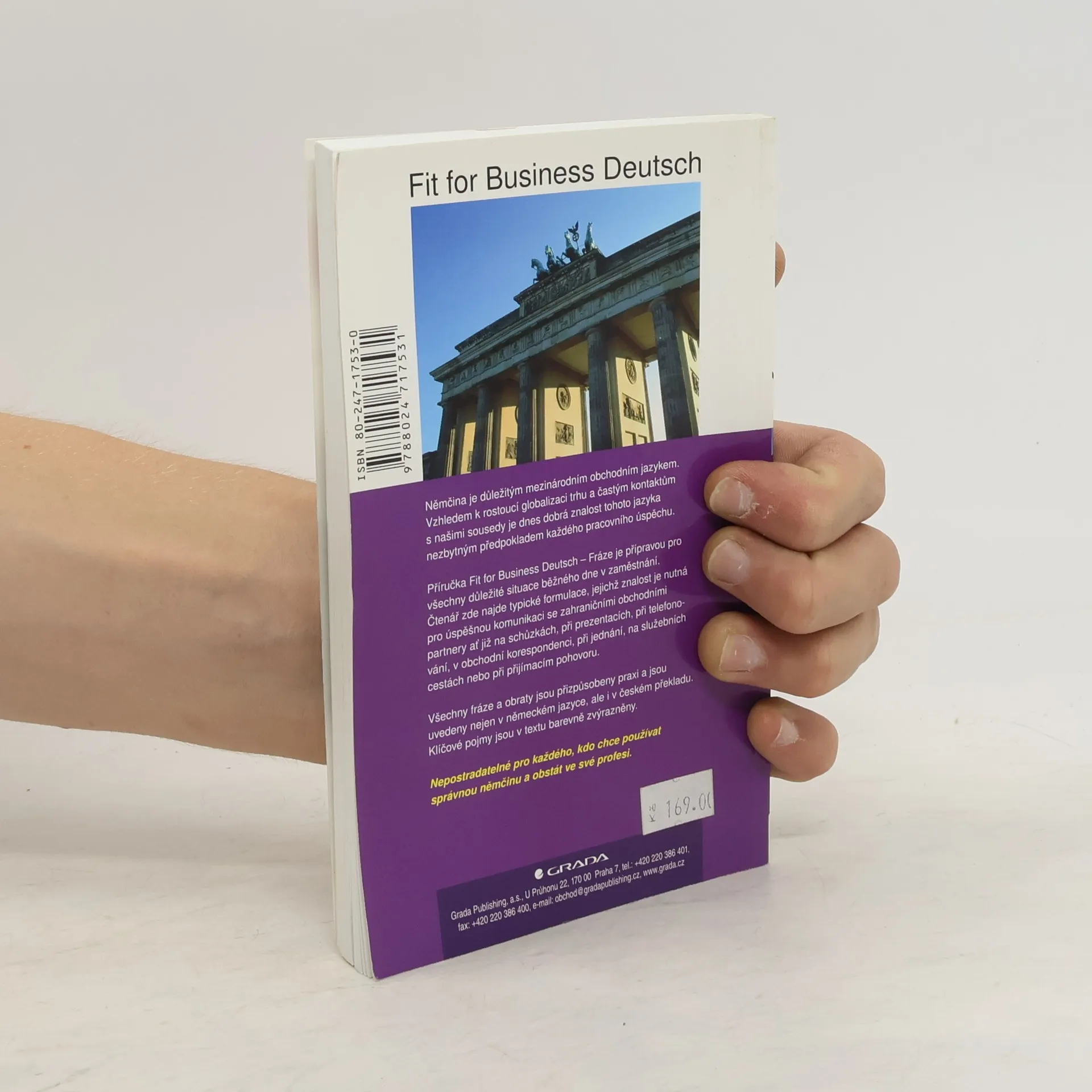 Němčina je důležitým mezinárodním obchodním jazykem. Vzhledem k rostoucí globalizaci trhu a častým kontaktům s našimi sousedy je dnes dobrá znalost tohoto jazyka nezbytným předpokladem každého pracovního úspěchu. Fráze je přípravou pro všechny důležité situace běžného dne v zaměstnání. Čtenář zde najde typické formulace, jejichž znalost je nutná pro úspěšnou komunikaci se zahraničními obchodními partnery ať již na schůzkách, při prezentacích, při telefonování, v obchodní korespondenci, při jednání, na služebních cestách nebo při přijímacím pohovoru. Všechny fráze a obraty jsou přizpůsobeny praxi a jsou uvedeny nejen v německém jazyce, ale i v českém překladu. Klíčové pojmy jsou v textu barevně zvýrazněny. Nepostradatelné pro každého, kdo chce používat správnou němčinu a obstát ve své profesi.