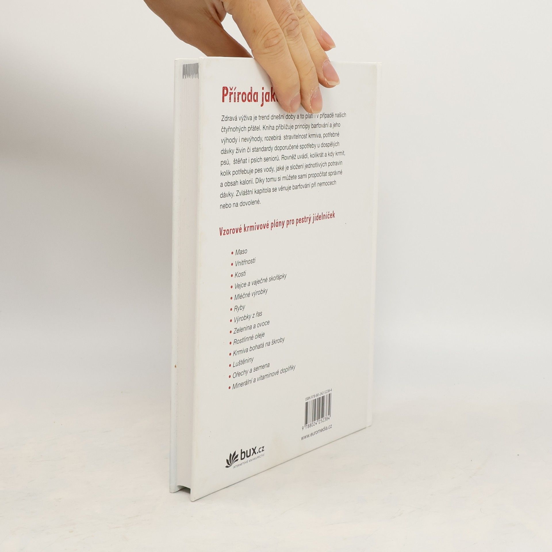 Krmení syrovou stravou je mezi pejskaři jednoznačný trend. Metoda „barf“ se snaží co nejvíce imitovat to, co jedí divoké psovité šelmy, a „barfovat“ znamená rozumět zásadám zdravé výživy psů, znát principy krmení syrovou stravou, umět sestavit správnou dávku tak, aby zvíře dostalo vše, co potřebuje. Na všechny tyto oblasti se kniha zaměřuje.