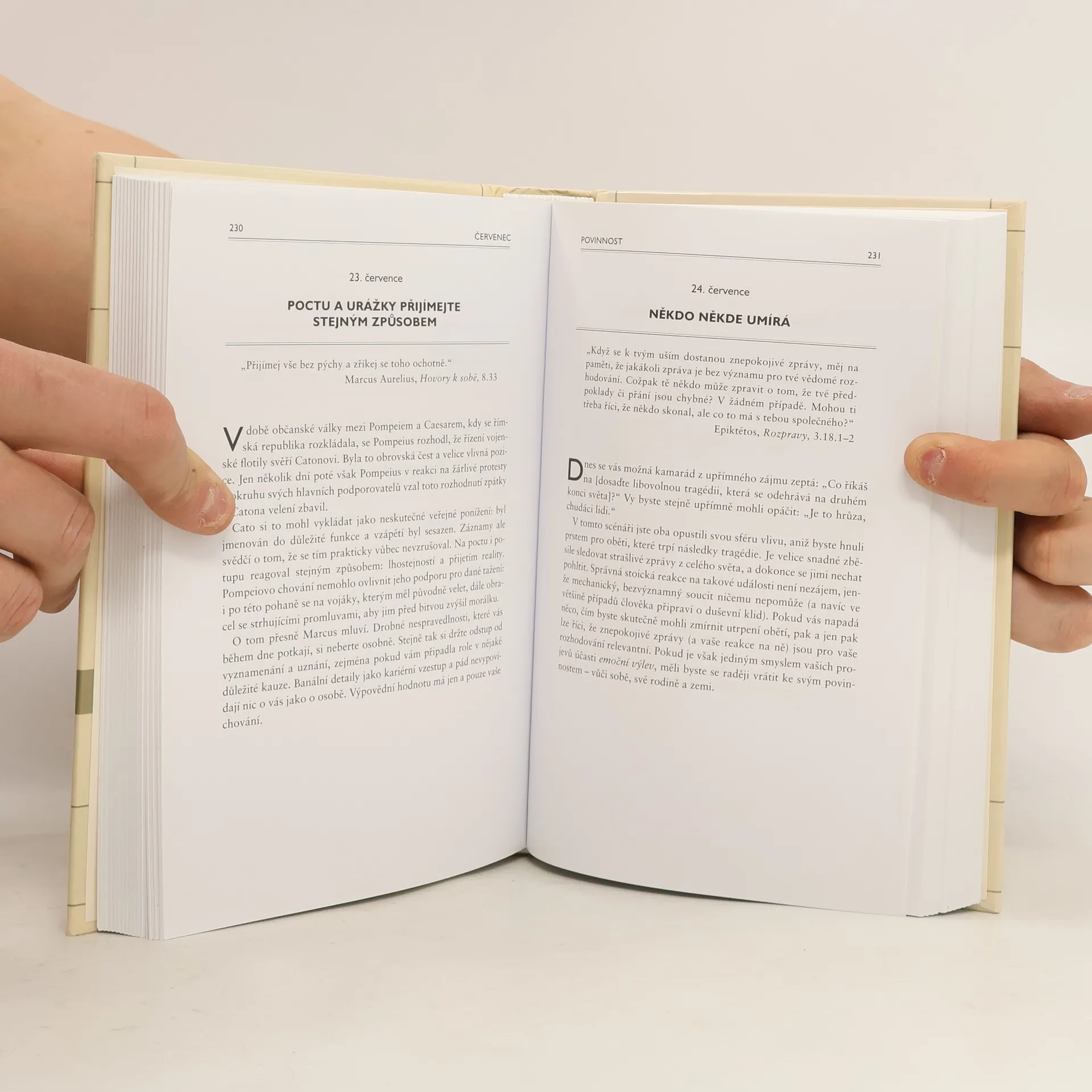 Zamyšlení pro každý den v roce v kontextu stoických myšlenek Marka Aurelia, Epiktéta či Seneky. Texty odpovídají na to, co je skutečné měřítko úspěchu, jak ovládnout negativní emoce, jak správně užít rozum, jak nalézt smysl života a překonat smutek.