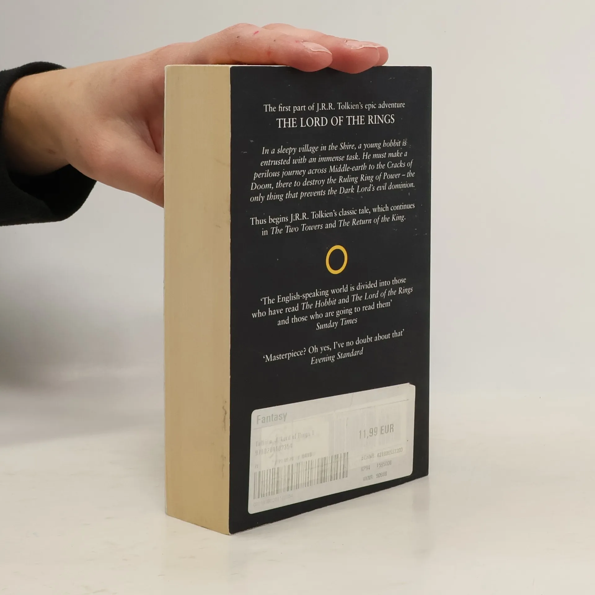Continuing the story begun in The Hobbit, this is the first part of Tolkien s epic masterpiece, The Lord of the Rings, featuring a striking black cover based on Tolkien s own design, the definitive text, and a detailed map of Middle-earth. Sauron, the Dark Lord, has gathered to him all the Rings of Power the means by which he intends to rule Middle-earth. All he lacks in his plans for dominion is the One Ring the ring that rules them all which has fallen into the hands of the hobbit, Bilbo Baggins. In a sleepy village in the Shire, young Frodo Baggins finds himself faced with an immense task, as his elderly cousin Bilbo entrusts the Ring to his care. Frodo must leave his home and make a perilous journey across Middle-earth to the Cracks of Doom, there to destroy the Ring and foil the Dark Lord in his evil purpose. Part of a set of three paperbacks, this popular edition is once again available in its classic black livery designed by Tolkien himself."