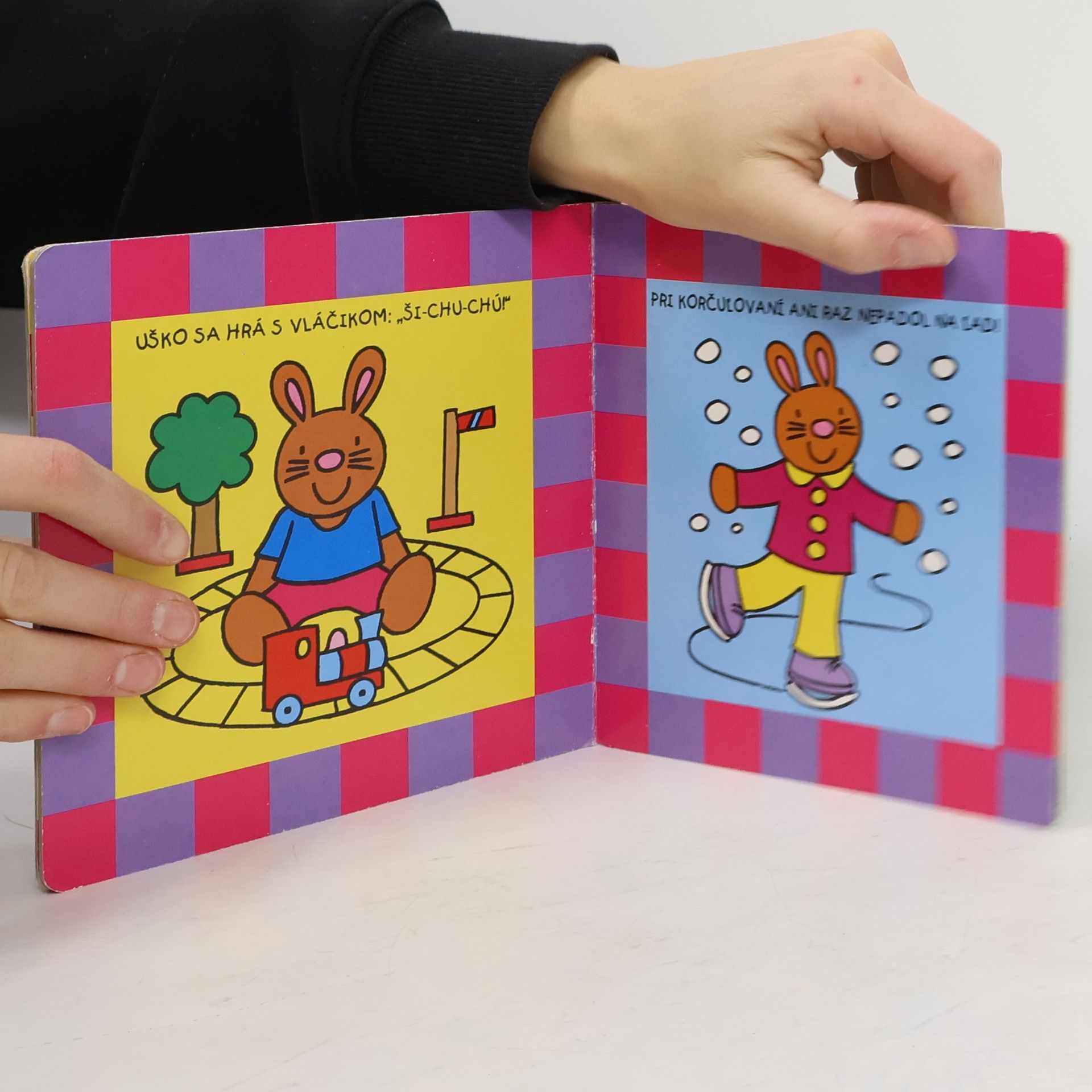 Pekne ilustrované leporelo pre najmenšie deti, ktoré zvedavo spoznávajú svet. Vďaka názorným kresbám s obľúbeným zvieratkom sa hravou formou naučia nové slovíčka, ktoré pomenúvajú rozličné zábavné činnosti a veci z ich okolia.