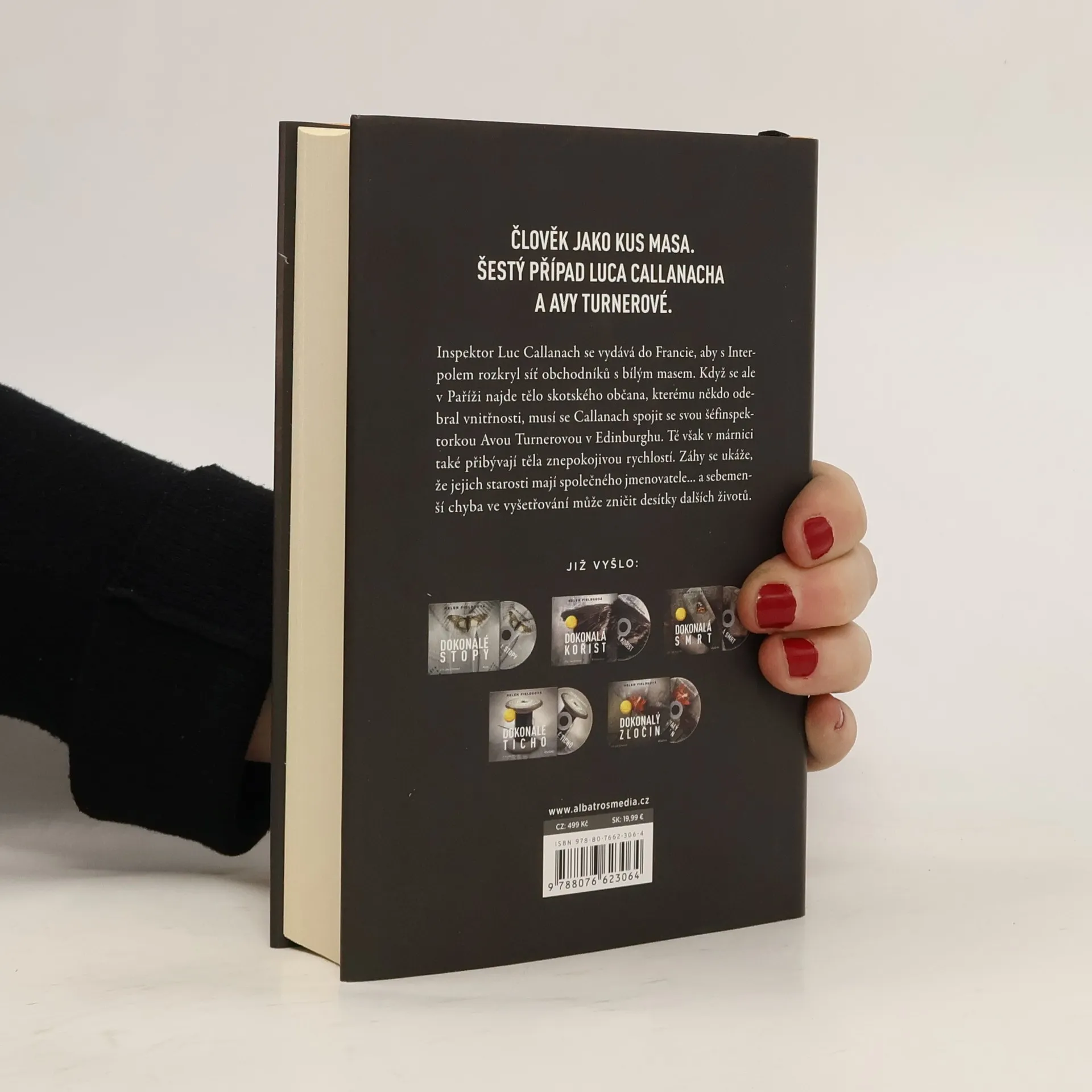 Člověk jako kus masa. Šestý případ Luca Callanacha a Avy Turnerové. Inspektor Luc Callanach se vydává do Francie, aby s Interpolem rozkryl síť obchodníků s bílým masem. Když se ale v Paříži najde tělo skotského občana, kterému někdo odebral vnitřnosti, musí se Callanach spojit se svou šéfinspektorkou Avou Turnerovou v Edinburghu. Té však v márnici také přibývají těla znepokojivou rychlostí. Záhy se ukáže, že jejich starosti mají společného jmenovatele… a sebemenší chyba ve vyšetřování může zničit desítky dalších životů. „Dokonalá tma je dalším napínavým thrillerem z pera vynikající autorky. Tento nefalšovaně temný i dojímavý příběh nebudete moct odložit.“ Isabel Ashdown, bestsellerová autorka thrillerů Little Sister a Beautiful Liars „U čtení Dokonalé tmy ani nedýcháte. Tento podmanivý a odvážný díl nemá žádná hluchá místa, je výborně promyšlený a spočívá na silných faktografických základech.“ Essie Fox, autorka románů The Last Days of Leda Grey, The Goddess of the Thief