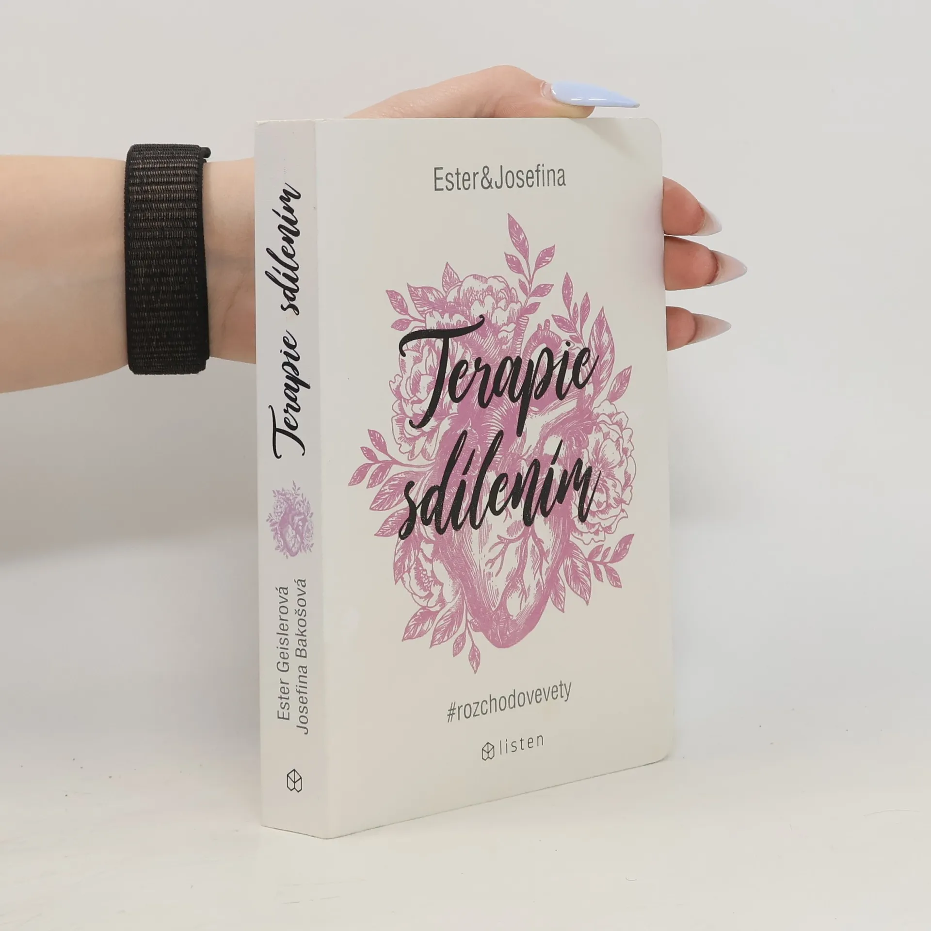 Za projektem Terapie sdílením, aktuální internetovou senzací, stojí kreativní dvojice Ester Geislerová a Josefina Bakošová. Před několika měsíci vystavily na svých sociálních sítích několik mrazivých, a zároveň cynický úsměv vzbuzujících vět, kterými se jistý muž rozešel s jejich kamarádkou. Toto malé gesto spustilo lavinu; během následujících týdnů jim čtenáři začali posílat své rozchodové věty a hashtag „terapie sdilenim“ se stal doslova kultovním. Kniha je věrným obrazem autentického prostředí internetových chatů a messengerů, kde se dnes tak často odehrávají trpké konce vztahů. Sebrané věty fungují opravdu jako svébytná terapie; při četbě a úlevném smíchu si člověk rád připomene, že tak zle na tom přece jen ještě není. Kniha je doplněna texty obou autorek, esejí mediálního teoretika Tomáše Dvořáka, osobními fotkami, vzkazy a dalšími materiály Ester a Josefiny.