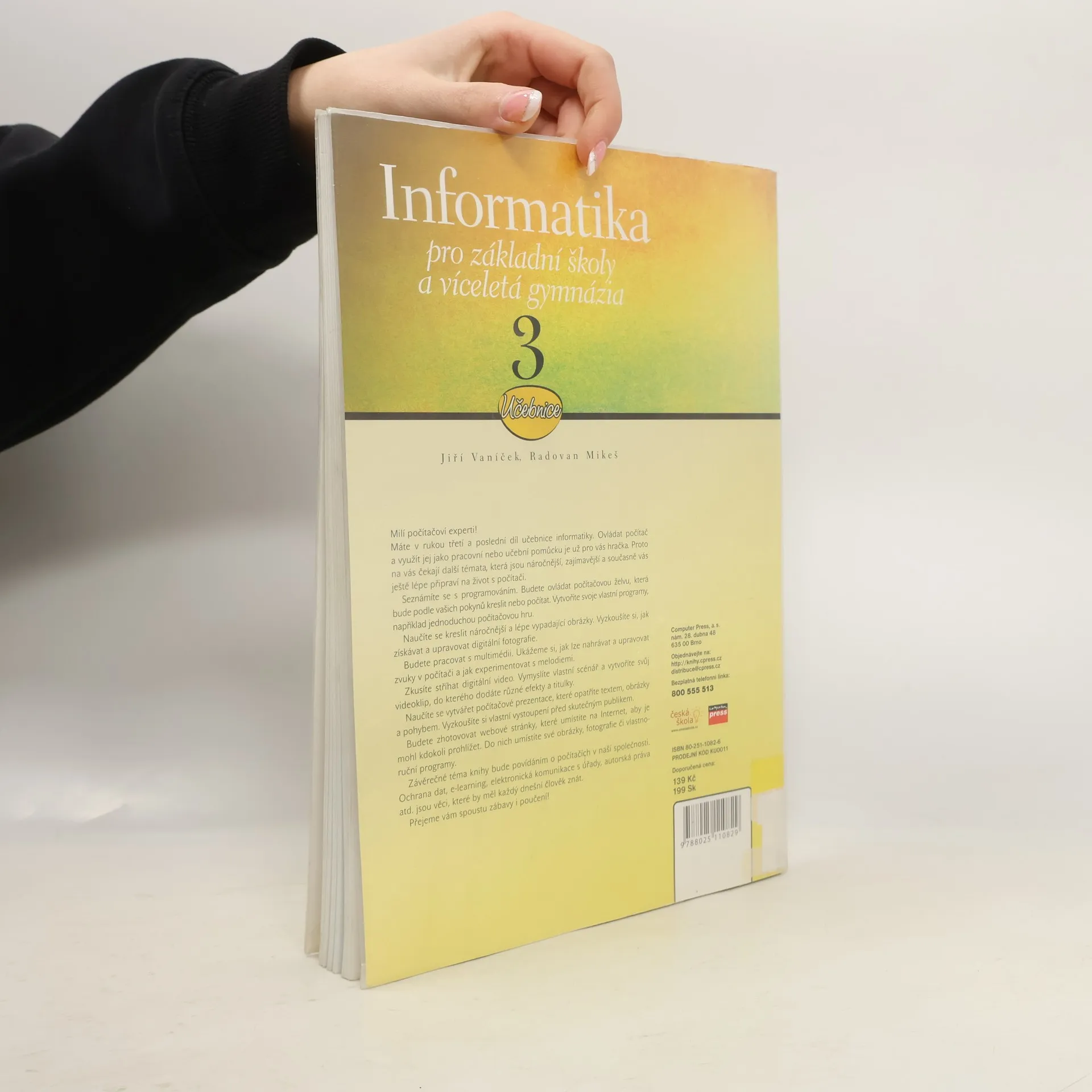Milí počítačoví experti! Máte v rukou třetí a poslední díl učebnice informatiky. Ovládat počítač a využít jej jako pracovní nebo učební pomůcku je už pro vás hračka. Proto na vás čekají další, náročnější témata, která jsou velmi zajímavá a současně vás ještě lépe připraví na život s počítači. Seznámíte se s programováním. Budete ovládat počítačovou želvu, která bude podle vašich pokynů kreslit nebo počítat. Vytvoříte svoje vlastní programy, například jednoduchou počítačovou hru. Naučíte se kreslit náročnější a lépe vypadající obrázky. Vyzkoušíte si, jak získávat a upravovat digitální fotografie. Budete pracovat s multimédii. Ukážeme si, jak lze nahrávat a upravovat zvuky v počítači a jak experimentovat s melodiemi. Zkusíte stříhat digitální video. Vymyslíte vlastní scénář a vytvoříte svůj videoklip, do kterého dodáte různé efekty a titulky. Naučíte se vytvářet počítačové prezentace, které opatříte textem, obrázky a pohybem. Vyzkoušíte si vlastní vystoupení před skutečným publikem. Budete zhotovovat web