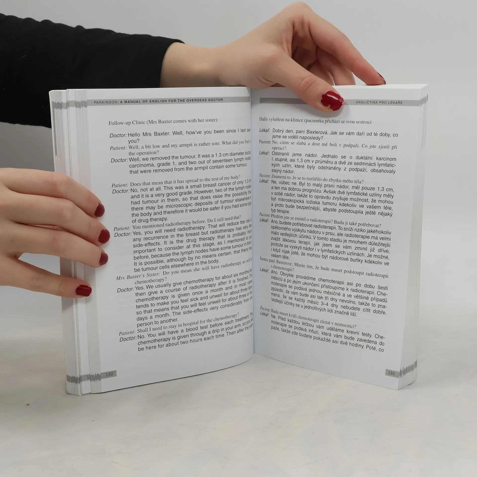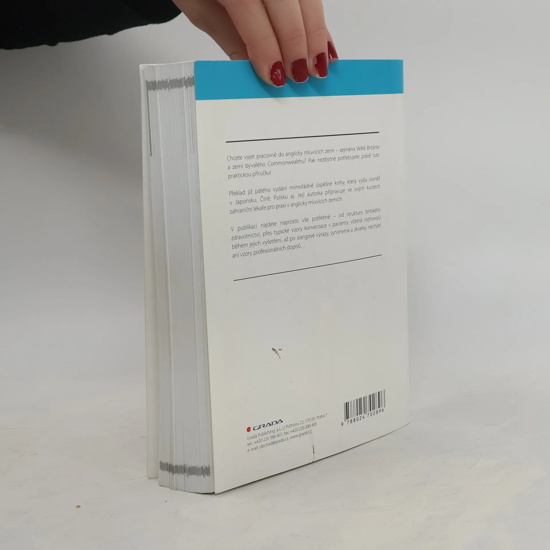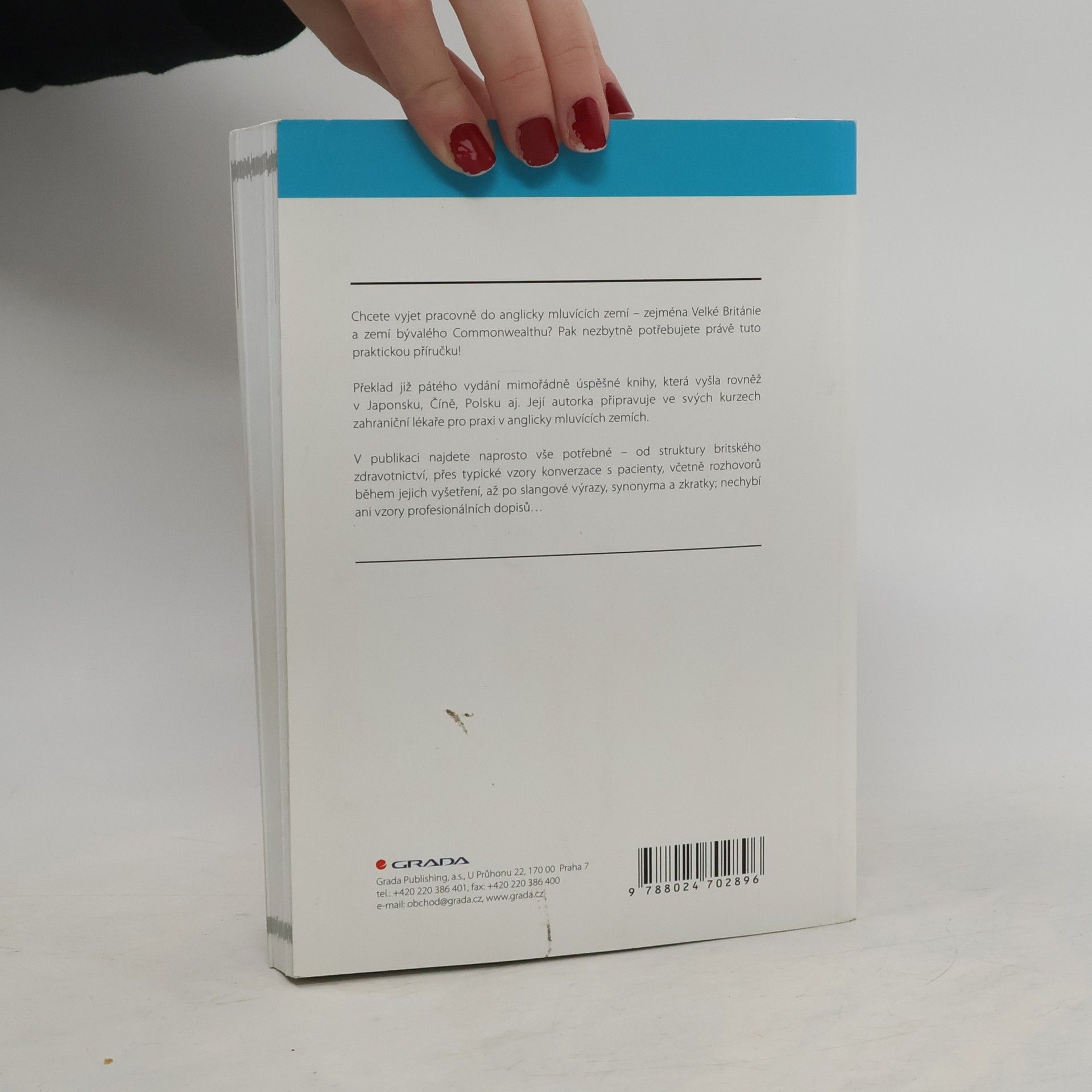 Potřebujete mluvit s anglicky mluvícím kolegou (lékařem, zdravotníkem) či pacientem? Nebo snad máte v úmyslu vyjet pracovně do anglicky mluvících zemí - zejména Velké Britanie a zemí bývalého Commonwealthu? Pak nezbytně potřebujete právě tuto knihu! Překlad pátého vydání mimořádně úspěšné knihy autorky, která připravuje ve svých kurzech zahraniční lékaře pro praxi v anglicky mluvících zemích. Kniha vyšla již v Japonsku, Číně i Polsku. V knize najdete naprosto vše potřebné - od struktury britského zdravotnictví, přes typické vzory konverzace s pacienty včetně jejich vyšetření až po slangové výrazy, synonyma a zkratky, nechybí ani vzory profesionálních dopisů... (manuál pro praxi)