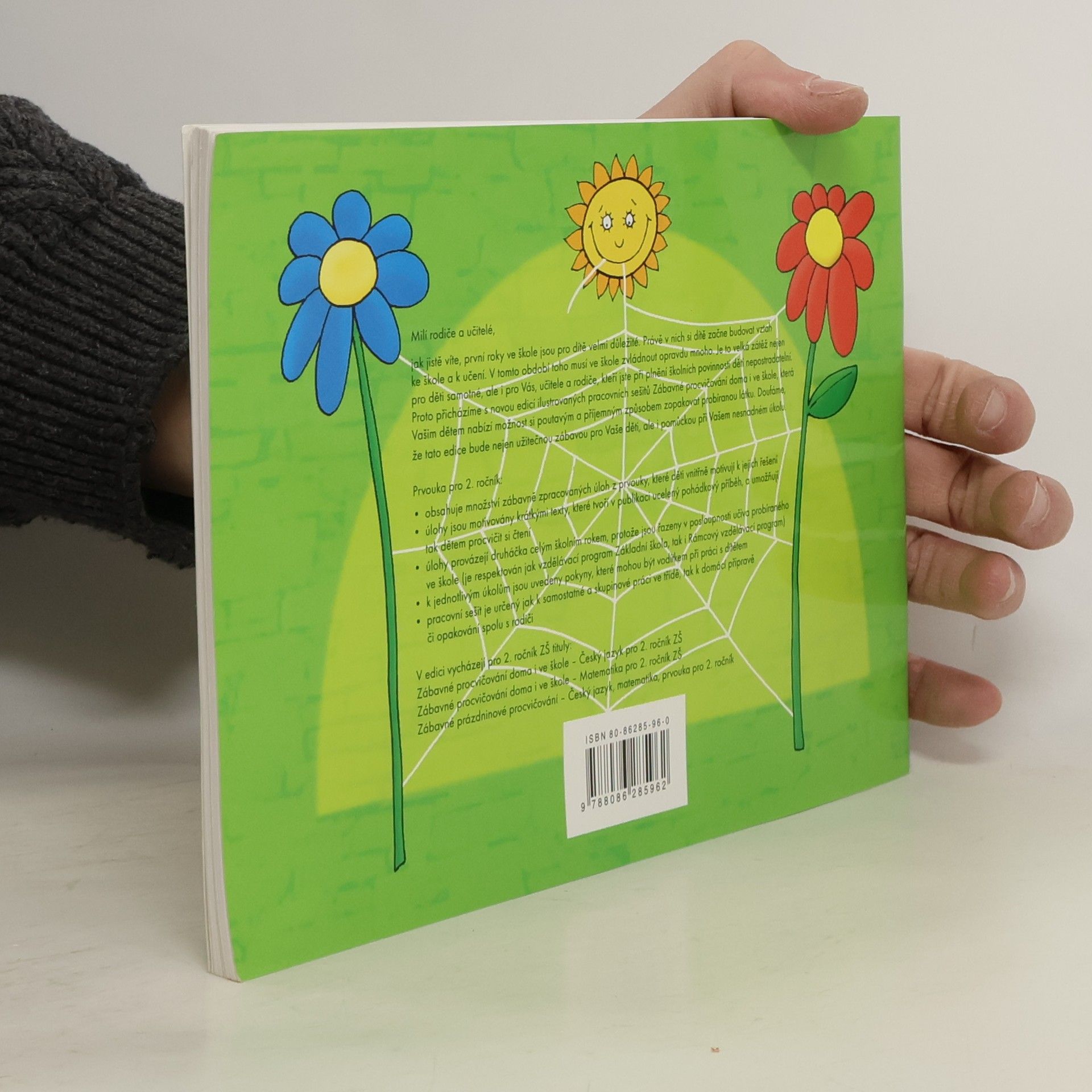 Ilustrovaný pracovní sešit se zábavně zpracovanými úlohami. Pracovní sešit určený pro žáky 2. ročníků základní školy. Obsahuje množství zábavně zpracovaných úloh z prvouky. Úlohy jsou motivovány krátkými texty, které tvoří v publikaci ucelený pohádkový příběh, a umožňují tak dětem procvičit si čtení. Úlohy provázejí druháčka celým školním rokem - jsou řazeny v posloupnosti učiva probíraného ve škole (je respektován jak vzdělávací program Základní škola, tak i Rámcový vzdělávací program). K úkolům jsou uvedeny pokyny, které mohou být vodítkem pro rodiče i učitele při práci s dítětem. Pracovní sešit je určený jak k samostatné a skupinové práci ve třídě, tak k domácí přípravě či opakování spolu s rodiči.