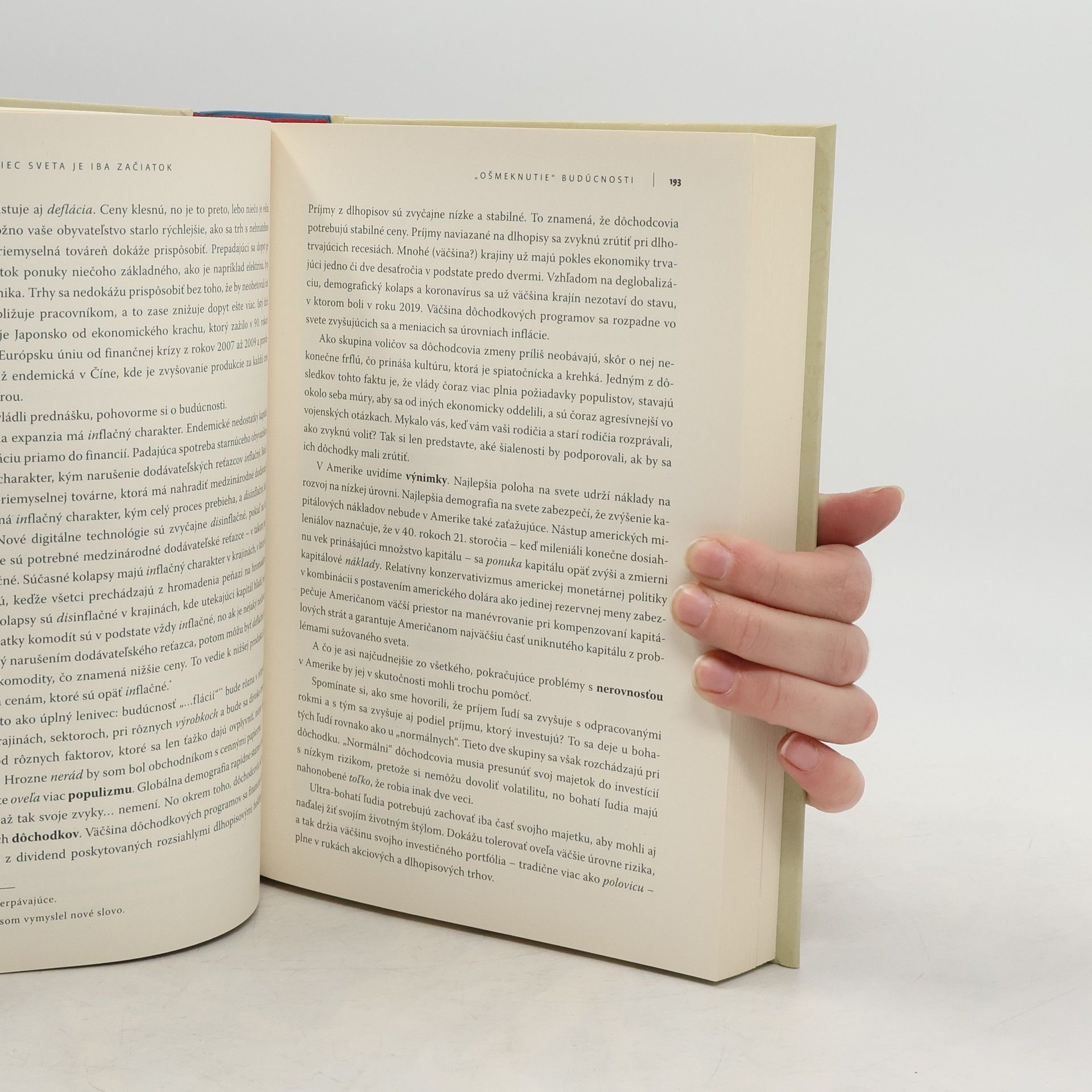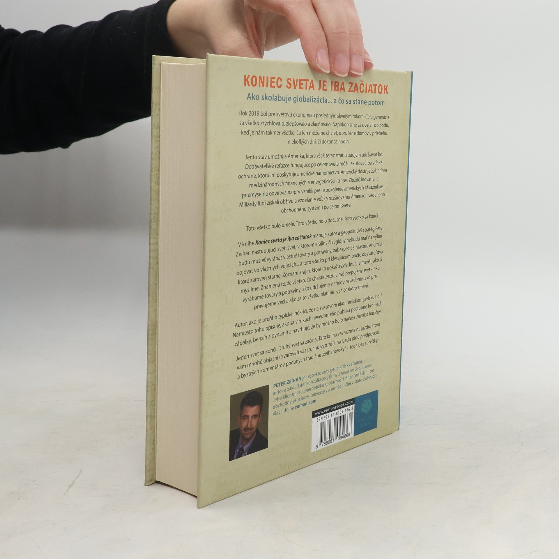 Dodávateľské reťazce fungujúce po celom svete môžu existovať iba vďaka ochrane, ktorú im poskytuje americké námorníctvo. Americký dolár je základom medzinárodných finančných a energetických trhov. Zložité inovatívne priemyselné odvetvia najprv vznikli pre uspokojenie amerických zákazníkov. Miliardy ľudí získali obživu a vzdelanie vďaka rozširovaniu Amerikou vedeného obchodného systému po celom svete. Toto všetko bolo umelé. Toto všetko bolo dočasné. Toto všetko sa končí. Geopolitický stratég Peter Zeihan v knihe mapuje nastupujúci svet: svet, v ktorom krajiny či regióny nebudú mať na výber – budú musieť vyrábať vlastné tovary a potraviny, zabezpečiť si vlastnú energiu, bojovať vo vlastných vojnách... a toto všetko pri klesajúcom počte obyvateľstva, ktoré zároveň starne. Zoznam krajín, ktoré to dokážu zvládnuť, je menší, ako si myslíme. Autor opisuje, ako sa v rukách nevedomého publika postupne hromadili zápalky, benzín a dynamit a navrhuje, že by možno bolo načase zavolať hasičov. Jeden svet sa končí. Druhý sa začína. Táto kniha vás vezme na jazdu, ktorá vám mnohé objasní (a zároveň vás trochu vystraší), na jazdu plnú predpovedí a bystrých komentárov podaných tradične „zeihanovsky“ – teda bez servítky.