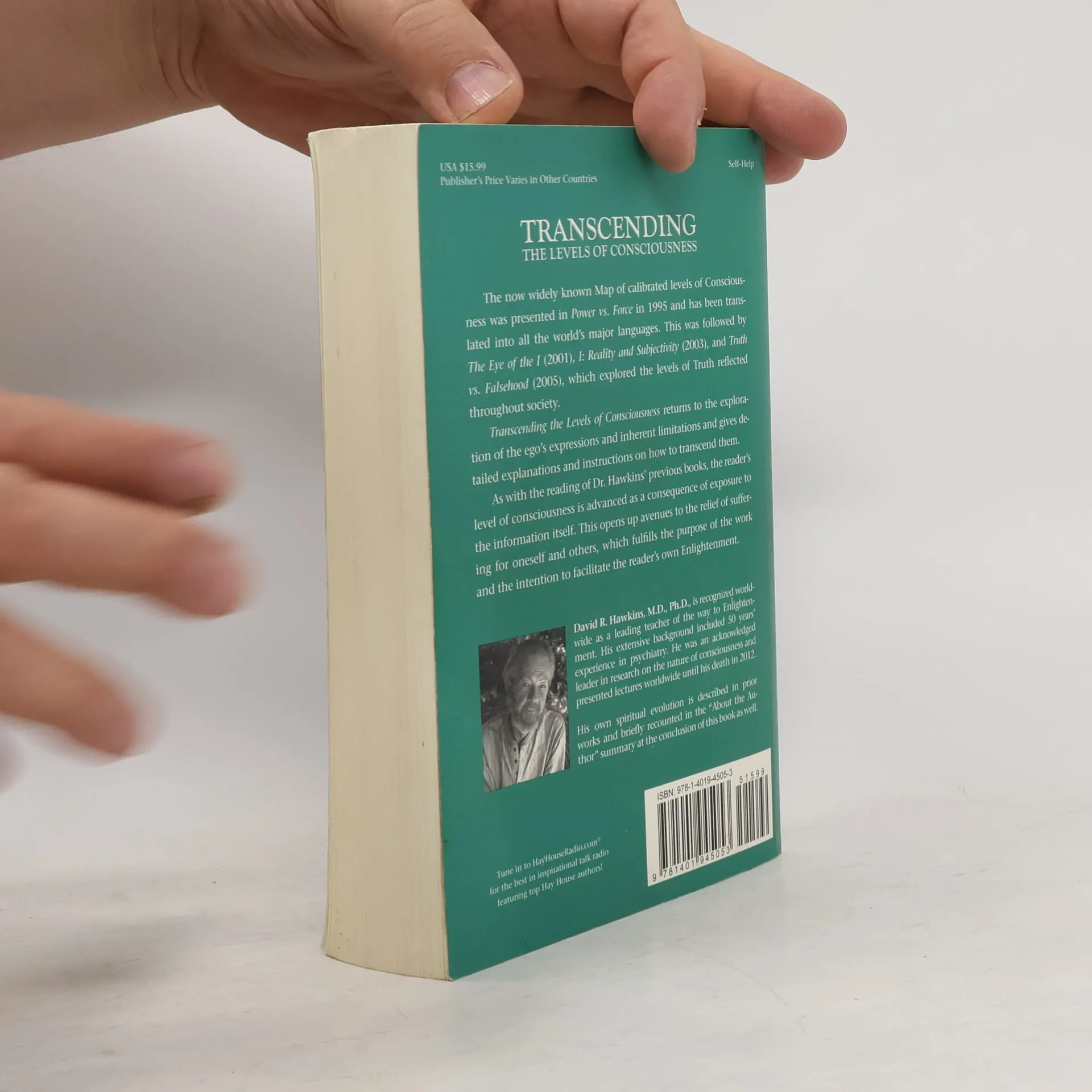 The now widely known Map of calibrated levels of Consciousness was presented in Power vs. Force in 1995 and has been translated into all the world's major languages. This was followed by The Eye of the I (2001), I: Reality and Subjectivity (2003), and Truth vs. Falsehood (2005), which explored the levels of Truth reflected throughout society. Transcending the Levels of Consciousness returns to the exploration of the ego's expressions and inherent limitations and gives detailed explanations and instructions on how to transcend them. As with the reading of Dr. Hawkins' previous books, the reader's level of consciousness is advanced as a consequence of exposure to the information itself. This opens up avenues to the relief of suffering for oneself and others, which fulfills the purpose of the work and the intention to facilitate the reader's own Enlightenment