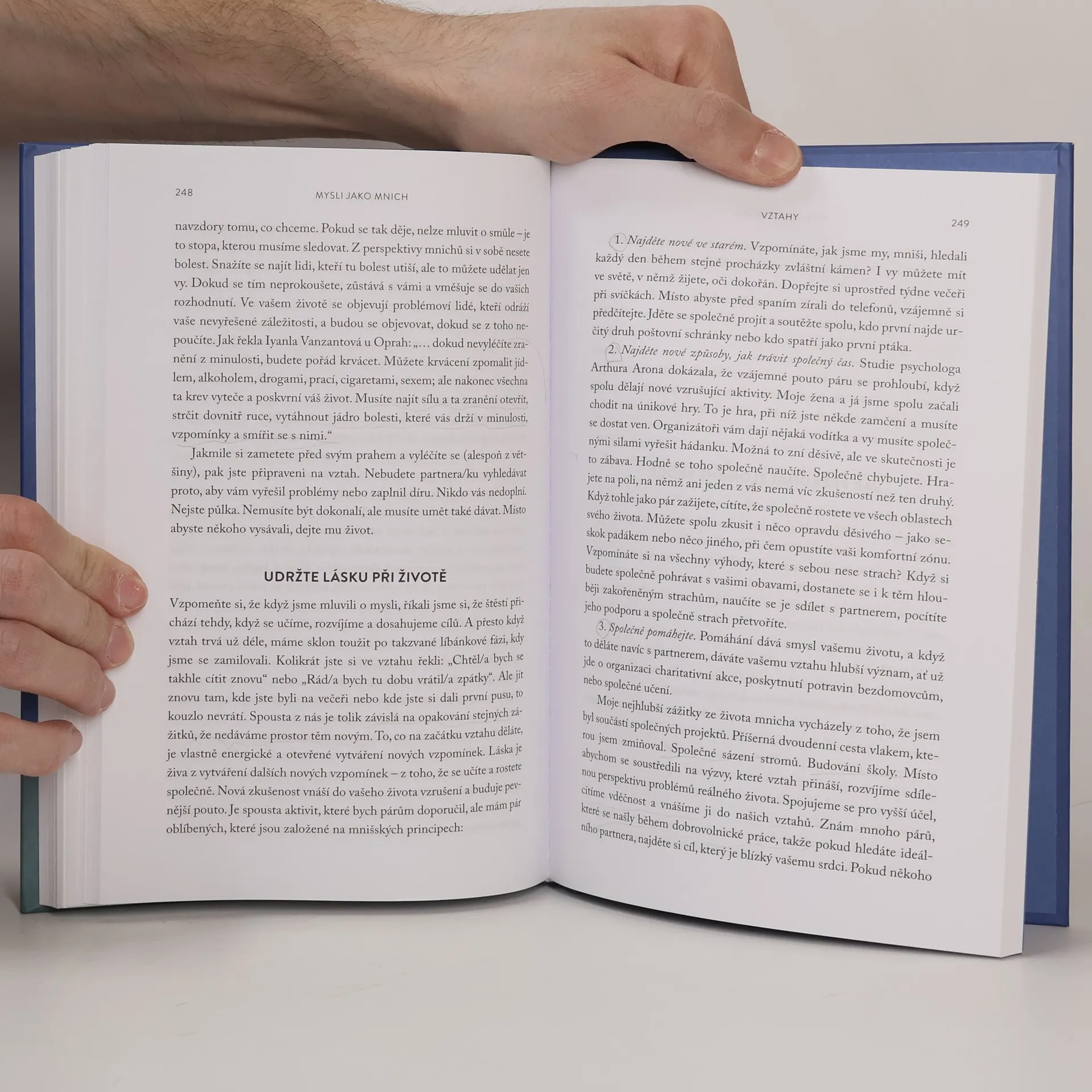 Když budeš přemýšlet jako mnich, tak pochopíš: • proč je srovnávání se s ostatními zhoubné, • jak můžeš využít vlastní strach, • v čem spočívá nakažlivost negativního myšlení, • proč nás netvoří jen naše myšlenky, • jak se vyhnout nadměrnému analyzování, • proč štěstí nenajdeš tak, že ho budeš hledat, • jak se něco přiučit od každého, s kým se setkáš, • proč je k dosažení úspěchu nevyhnutelné být laskavý, • jak nalézt v životě správný směr. A ještě mnoho dalšího…
