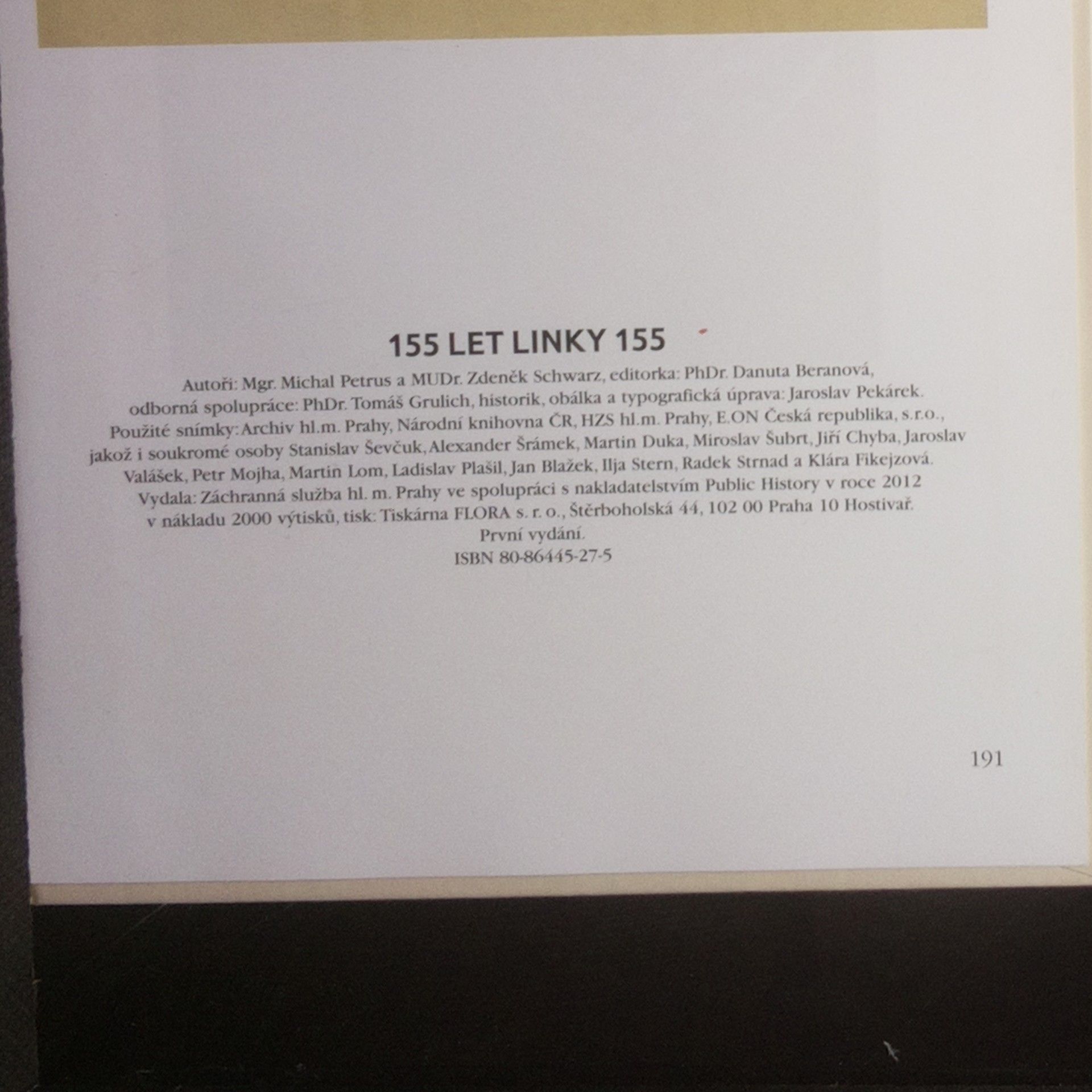 Autoři chronologicky popisují dějiny pražské záchranné služby od jejích počátků, spojených s potřebou zapojit při likvidaci požárů, následků povodní a jiných živelních pohrom kromě profesionálního sboru četnictva i vycvičené dobrovolníky, až do r. 2011, kdy měla být v Troji konečně zahájena výstavba vlastní budovy Záchranné služby hlavního města Prahy. Vlastní text je bohatě proložen citacemi z dobového tisku (přepisy i fotokopie článků) i černobílými a později barevnými fotografiemi, které zachycují podobu sanitních vozů (včetně interiérů) z různých období a zobrazují osobnosti z historie pražské záchranky i řadu budov, v nichž během 155 let sídlila. Nechybějí dobové předpisy o první pomoci a záchranné službě z r. 1897, 1927, 1932 a 1972 ani fotokopie průkazů, pamětních listů, medailí a dalších dokumentů a vzpomínkových předmětů. Jubilejní publikace přibližuje historii záchranné služby v Praze od založení Pražského dobrovolného sboru ochranného v r. 1858 do začátku 21. stol. Kniha má 190 stran, na kterých naleznete více než 350 unikátních fotografií.