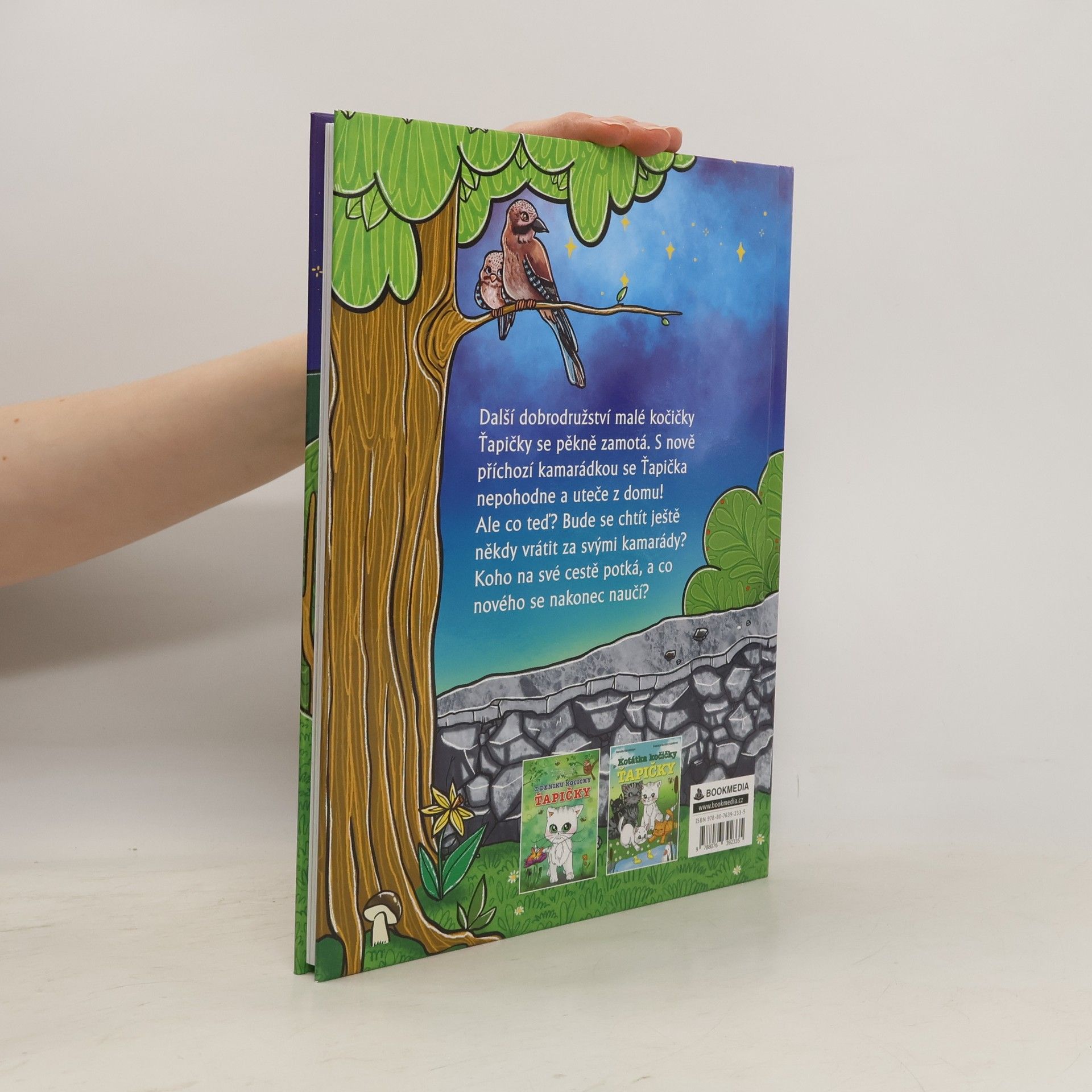 Třetí pokračování příběhů o kočičce Ťapičce se pěkně zamotá. Nenadálý kočičí návštěvník ji natolik rozčílí, až neuváženě uteče z domu a ztratí se. Na své dobrodružné cestě domů potká různé kamarády, kteří ji naučí něco nového – že pomáhat druhým a rozvažovat každý krok je mnohem přínosnější. Začtěte se společně s malými čtenáři do poutavých příběhů kočičí kamarádky, kterou dobře znáte z předchozích dílů. Texty doplňují krásné ilustrace a množství úkolů a omalovánek pro vaše děti.
