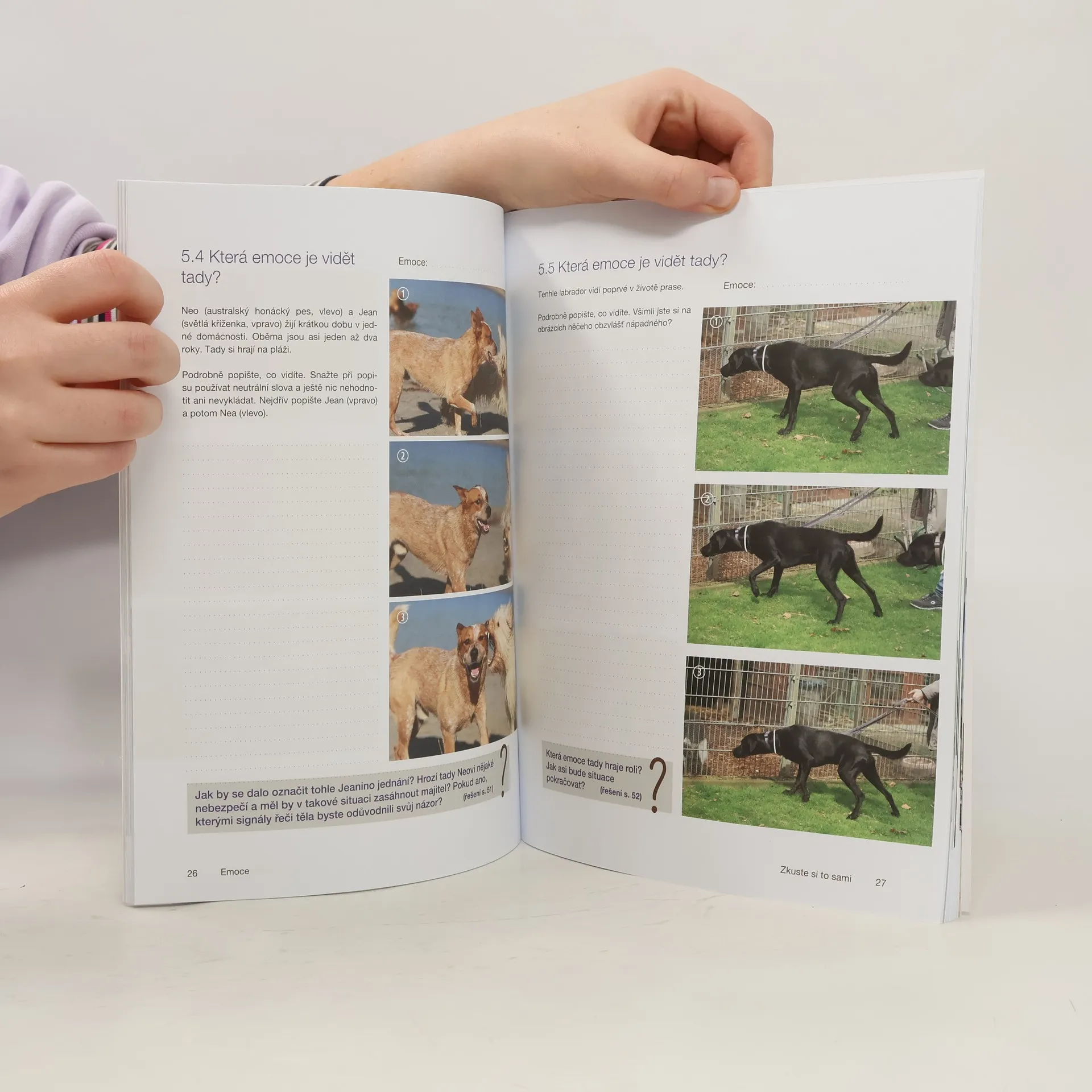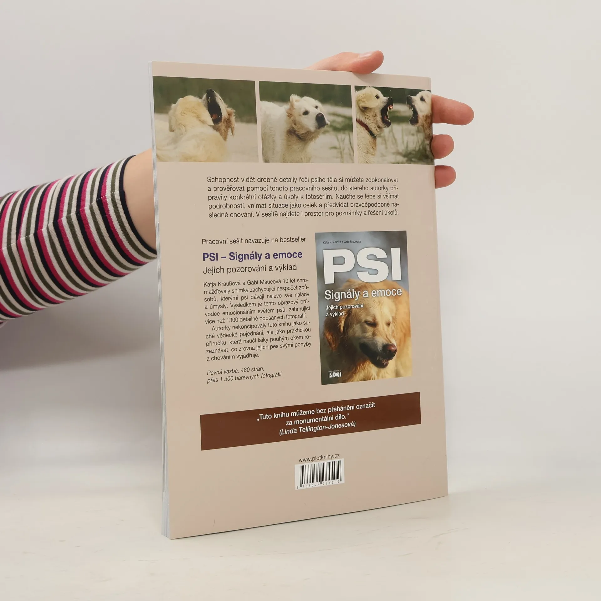 Schopnost vidět drobné detaily řeči psího těla si můžete zdokonalovat a prověřovat pomocí pracovního sešitu, do kterého autorky připravily konkrétní otázky a úkoly k fotosériím, abyste se naučili lépe si všímat podrobností, vnímat situace jako celek a předvídat pravděpodobné následné chování. V sešitě najdete i prostor pro poznámky a řešení úkolů.