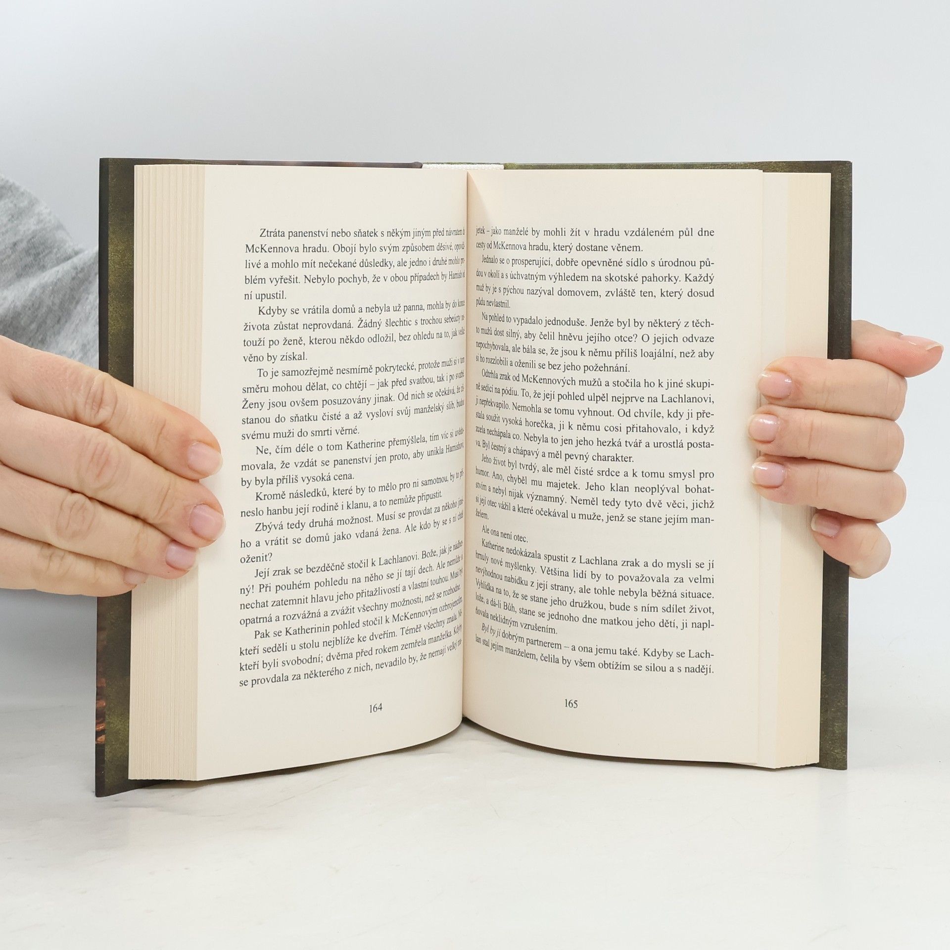Svěží romanticko-historický příběh z prostředí klanového společenství založeného na osobní odpovědnosti klanových vůdců nejen ve veřejných záležitostech, ale i v osobním milostném či manželském životě. Je také oslavou lidí schopných překonávat osudové překážky, hledat lásku a vášnivě milovat. Skotsko 1335 Nekonvenční lady Katherine byla dopřána vzácná výsada: smí si sama vybrat manžela. Je to však obtížnější, než očekávala. Když přece jen souhlasí se zasnoubením, vše se zhatí a Katherine zůstane samotná v divočině…, odkud ji zachrání zeman Lachlan MacTavish. Hrdý, drsný náčelník o ni pozorně pečuje a zdá se, že ho dívka zcela uchvátila. Ovšem v situaci, kdy se schyluje k válce klanů, se čestný Lachlan brání podlehnout její přitažlivosti, než mu Katherine sama projeví náklonnost. Přestože Lachlana taková smělost vyděsí, zaujme ho její krása i duchaplnost a uvědomí si, že MacTavishům spojení s mocnými McKenny prospěje. Ale je možné, aby v rodině, narušené sporem, zradou a falší, zachránili manželství, v němž rozkvétá nádherná láska?