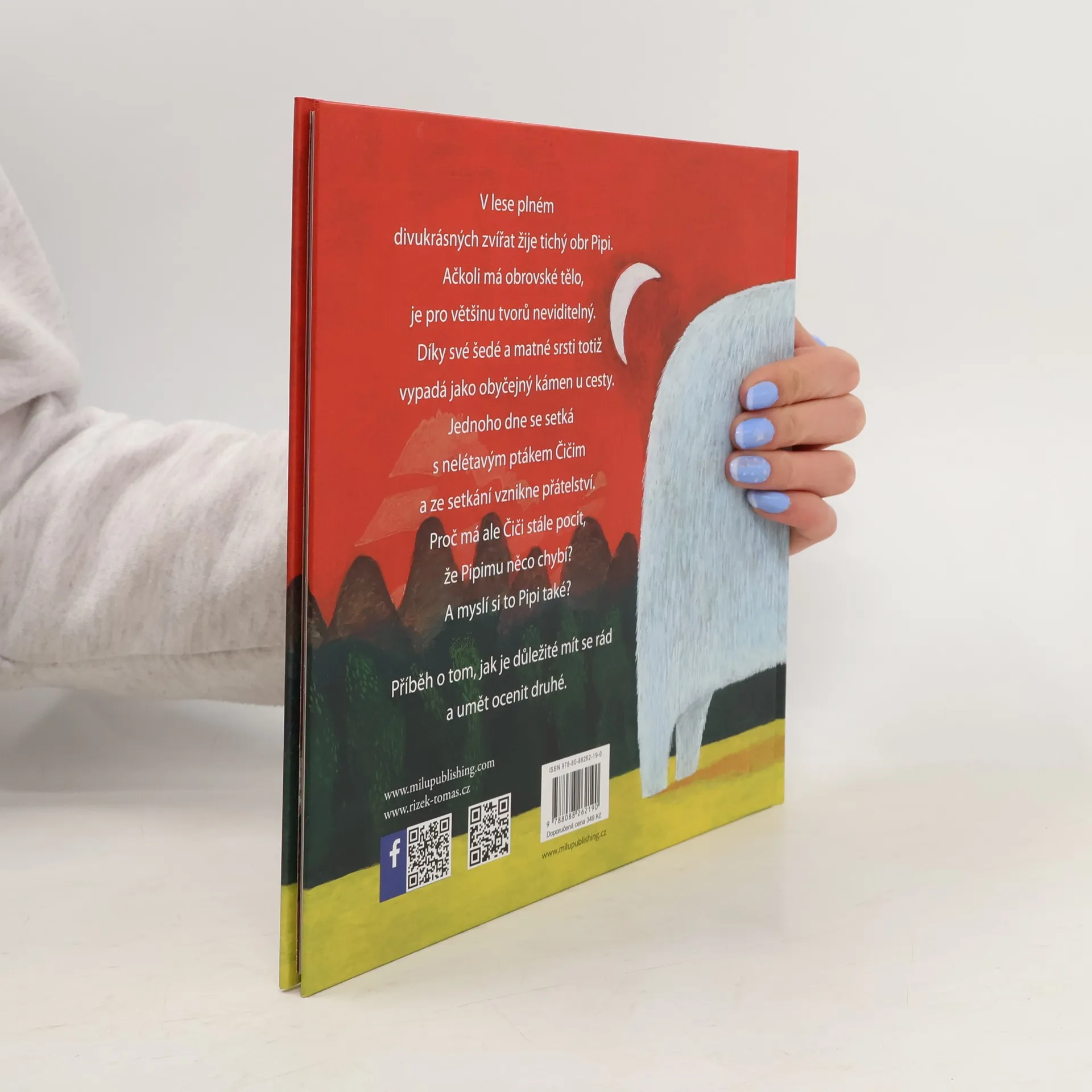 Kniha o přátelství a cestě k vzájemnému respektu. Příběh o tom, jak je důležité mít se rád a umět ocenit druhé. Ačkoli má obrovské tělo, je pro většinu tvorů neviditelný. Díky své šedé a matné srsti totiž vypadá jako obyčejný kámen u cesty. Jednoho dne se setká s nelétavým ptákem Čičim a ze setkání vznikne přátelství. Proč má ale Čiči stále pocit, že Pipimu něco chybí? A myslí si to Pipi také?