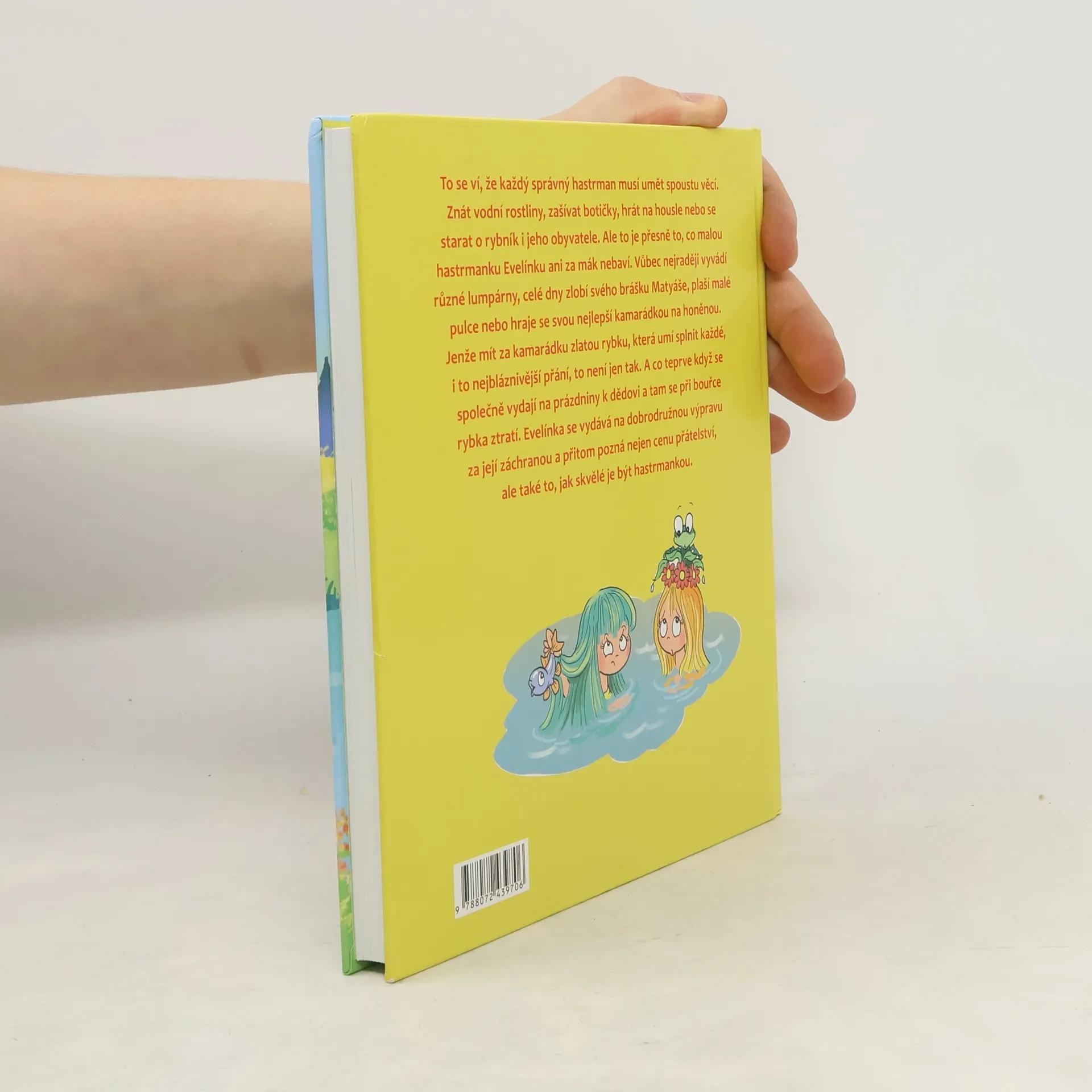 To se ví, že každý správný hastrman musí umět spoustu věcí. Znát vodní rostliny, zašívat botičky nebo hrát na housle, také se starat o rybník i jeho obyvatele. Ale to je přesně to, co malou hastrmanku Evelínku ani za mák nebaví. Vůbec nejraději vyvádí různé lumpárny, celé dny zlobí svého brášku Matyáše, plaší malé pulce, nebo hraje se svou nejlepší kamarádkou na honěnou. Jenže mít za kamarádku zlatou rybku, která umí splnit úplně každé, i to nejbláznivější přání, to není jen tak. A co teprve, když se společně vydají na prázdniny k dědovi a tam se při bouřce, jakou Evelínka ještě nezažila, rybka ztratí. Evelínka se vydává na dobrodružnou výpravu za její záchranou a přitom pozná nejen cenu přátelství, ale také to, jak skvělé je být hastrmankou.