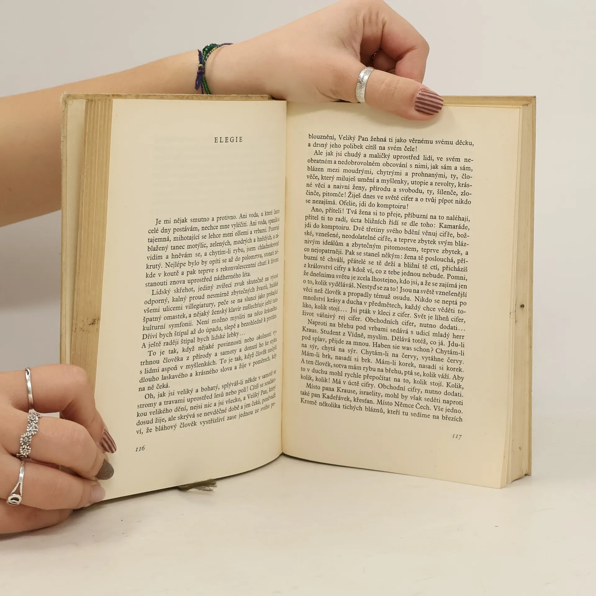 Svazek obsahuje prózy z let 1905-1915. Jeho jádrem je fejetonní soubor S městem za zády, soubor fejetonů vycházejícich v Lidových novinách od r. 1910 do r. 1915 a knižně vydaných v letech 1922-1923, v kterých autorovi zavýchodisko k úvahám o věcech politických, kulturních a uměleckých posloužily události jeho soukromého života, především styk s přírodou. Soubor doplňuje kratší próza Jelec, náležející svým obsahem a vnitřním ustrojením kfejetonům S městem za zády, dále pod souborným názvem "Prózy knižně nevydaně" povídky a fejetony téhož typu, jak jej představují fejetony S městem za zády, prózy publikované v letech 1906-1915 v Šibeničkách, Moravském kraji,Humoristických listech, Lidových novinách a v beletristické příloze Lidových novin.