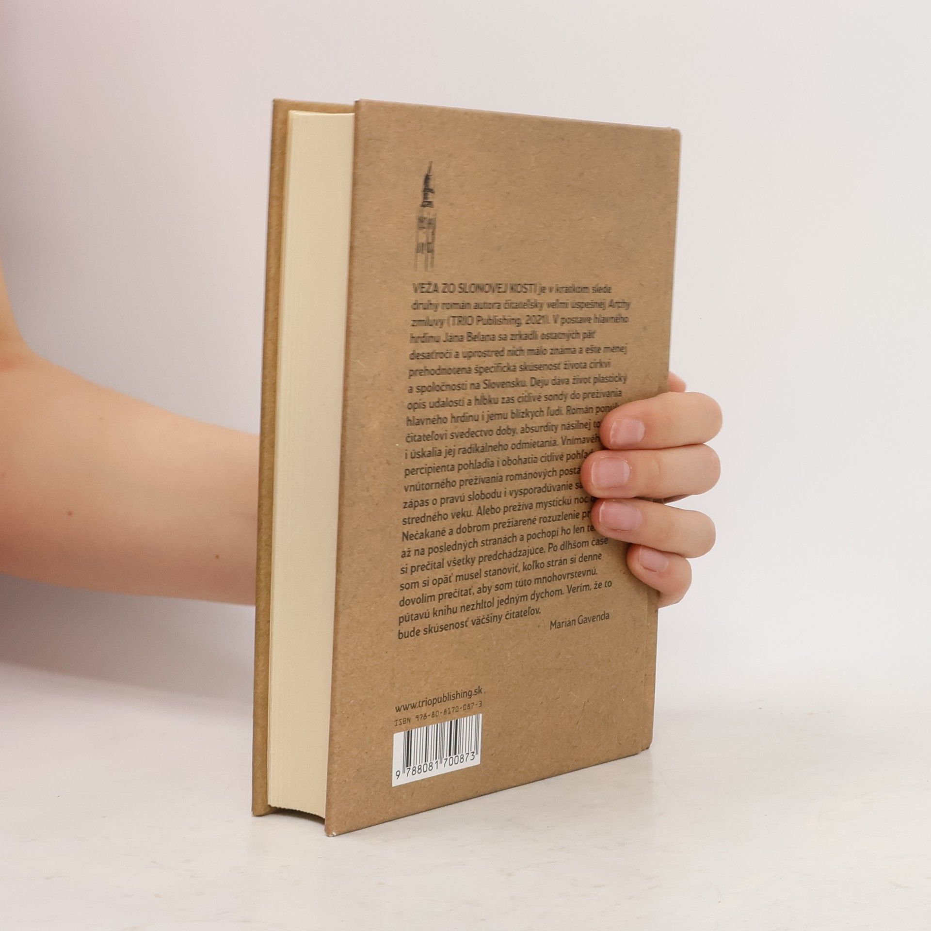 Keď pred rokom vstupoval Rastislav Puchala do slovenskej literatúry s Archou zmluvy, vydavateľ netušil, že nielenže si čitateľský úspech do roka vyžiada ďalšie vydanie, ale ani to, že autor zároveň s druhým vydaním svojej prvotiny prekvapí novou knižkou. VEŽA ZO SLONOVEJ KOSTI má rovnaké myšlienkové aj duchovné podhubie ako Archa zmluvy, v osudoch hlavného hrdinu Jána Belana sa však sústreďuje na posledných päť desaťročí života v normalizovanom Československu, resp. na postnovembrovom Slovensku. Zaujímavou je málo reflektovaná a ešte menej prehodnotená špecifická skúsenosť života cirkvi a spoločnosti, ktorou rodina hlavného hrdinu a jej blízki príbuzní a priatelia prechádzajú. Ponory do duše hlavného hrdinu od detstva do zrelého veku, jeho hľadanie správnej cesty nastavujú zrkadlo nielen spoločnosti, ale aj samotnému čitateľovi. Ako konštatuje M. Gavenda v krátkej charakteristike na zadnej obálke, „román ponúka čitatel'ovi svedectvo doby, absurdity násilnej totality i úskalia jej radikálneho odmietania.“ Spolu s autorom veríme, že bude veľa čitateľov, ktorí si spolu s M. Gavendom budú môcť povedať: „po dlhšom čase som si opäť musel stanoviť, kol'ko strán si denne dovolím prečítať, aby som túto mnohovrstevnú, pútavú knihu nezhltol jedným dychom.“