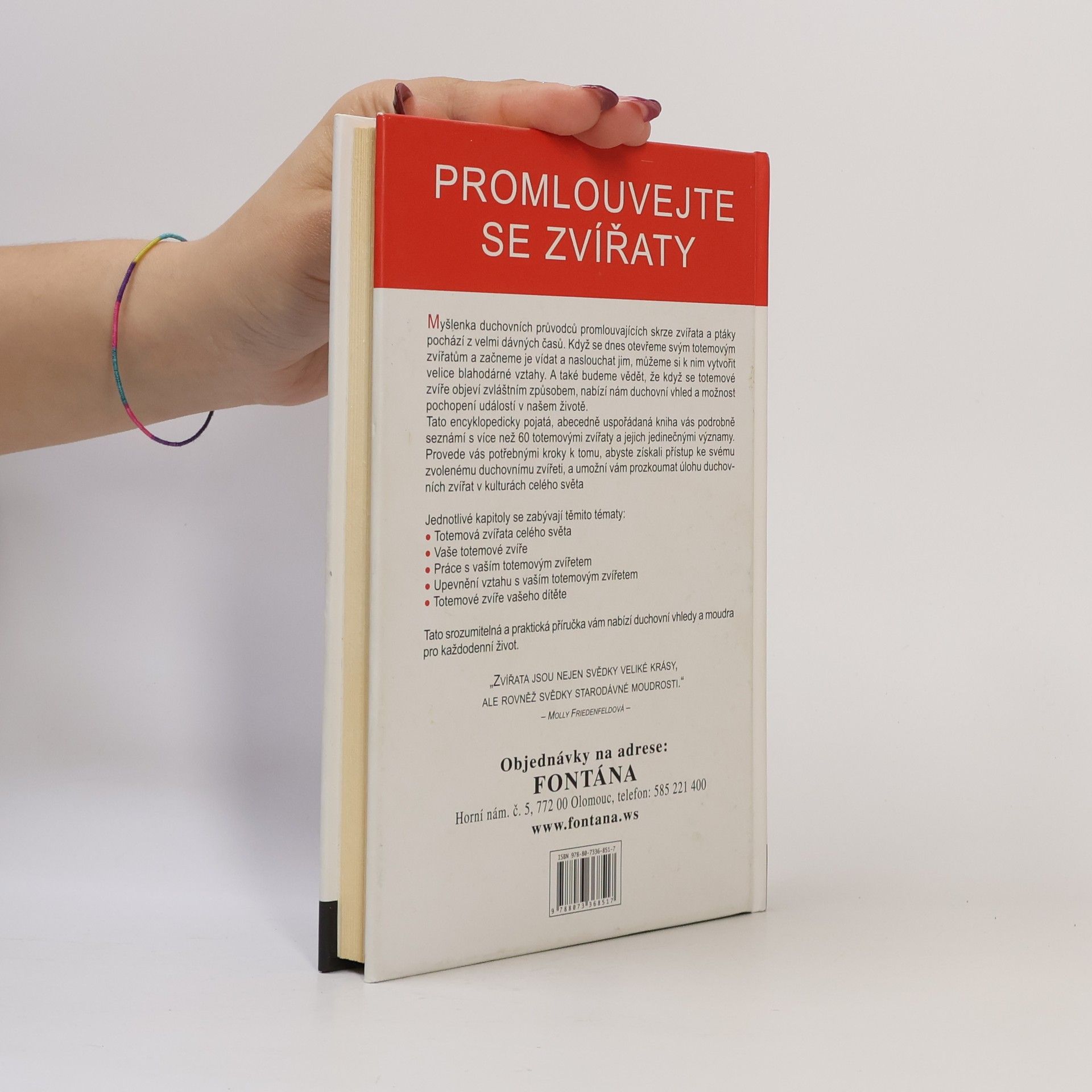 Myšlenka duchovních průvodců promlouvajících skrze zvířata a ptáky pochází z velmi dávných časů. Když se dnes otevřeme svým totemovým zvířatům a začneme je vídat a naslouchat jim, můžeme si k nim vytvořit velice blahodárné vztahy. A také budeme vědět, že když se totemové zvíře objeví zvláštním způsobem, nabízí nám duchovní vhled a možnost pochopení událostí v našem životě. Tato encyklopedicky pojatá, abecedně uspořádaná kniha vás podrobně seznámí s více než 60 totemovými zvířaty a jejich jedinečnými významy. Provede vás potřebnými kroky k tomu, abyste získali přístup ke svému zvolenému duchovnímu zvířeti, a umožní vám prozkoumat úlohu duchovních zvířat v kulturách celého světa Jednotlivé kapitoly se zabývají těmito tématy: Totemová zvířata celého světa Vaše totemové zvíře Práce s vaším totemovým zvířetem Upevnění vztahu s vaším totemovým zvířetem Totemové zvíře vašeho dítěte Tato srozumitelná a praktická příručka vám nabízí duchovní vhledy a moudra pro každodenní život.