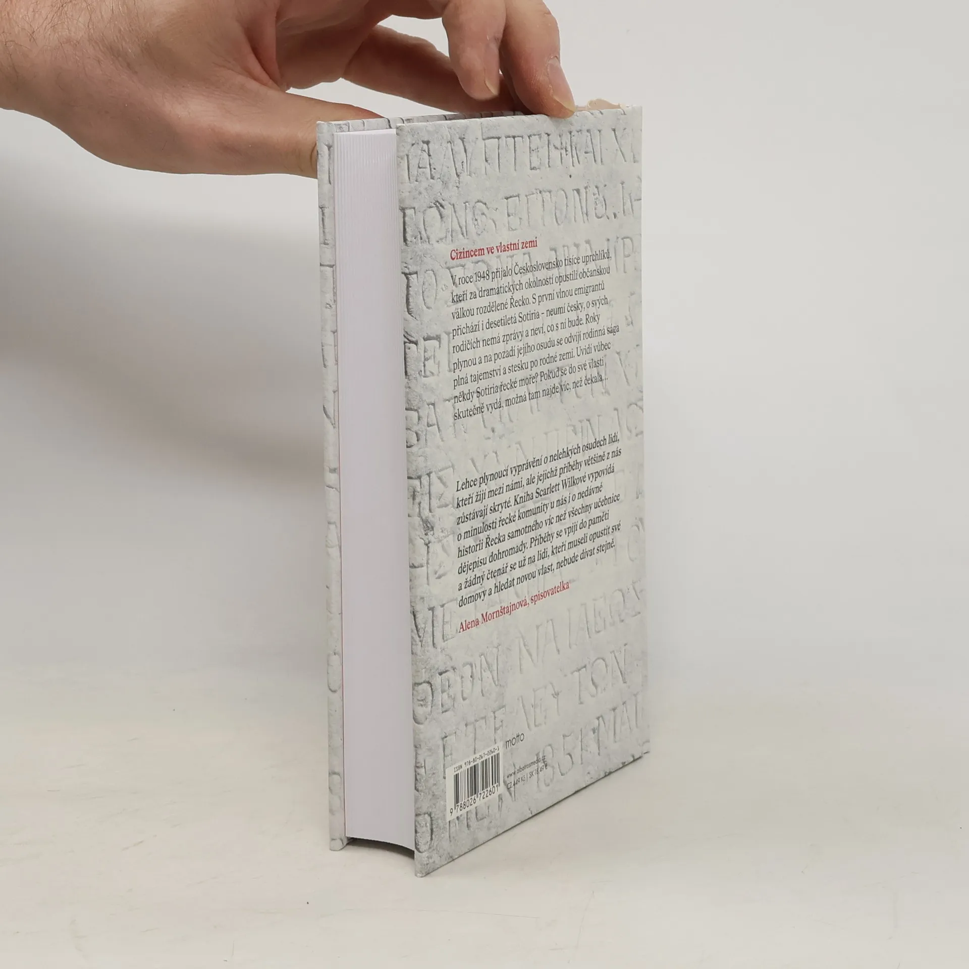 Cizincem ve vlastní zemi. Románový debut známé novinářky. V roce 1948 přijalo Československo tisíce uprchlíků, kteří za dramatických okolností opustili občanskou válkou rozdělené Řecko. S první vlnou emigrantů přichází i desetiletá Sotiria – neumí česky, o svých rodičích nemá zprávy a neví, co s ní bude. Roky plynou a na pozadí jejího osudu se odvíjí rodinná sága plná tajemství a stesku po rodné zemi. Uvidí někdy Sotiria řecké moře? Pokud se do své vlasti skutečně vydá, možná tam najde víc, než čekala… Dvě dcery řeckých uprchlíků, dva životy mezi dvěma zeměmi. Jaké to je, když se v deseti letech dítě ocitne samo v daleké cizí zemi, neumí jazyk, neví, kam se ztratili jeho rodiče, a vůbec nechápe, co se s ním stalo? Toto prožívaly v roce 1949 tisíce řeckých dětí, kterým po občanské válce v Řecku poskytlo Československo azyl. Mezi nimi byly i dvě osamocené holčičky Sotiria a Koula. Na pozadí jejích osudů se odvíjí rodinná sága plná tajemství a stesku po rodné zemi. Uvidí někdy Sotiria a Koula řecké moře? A kde jsou vlastně doma?